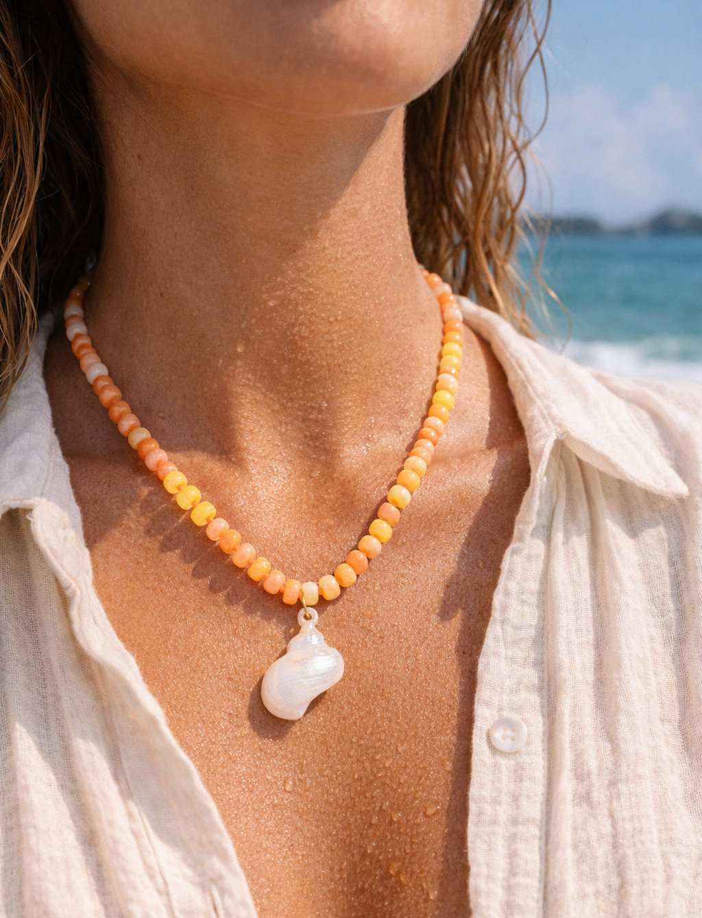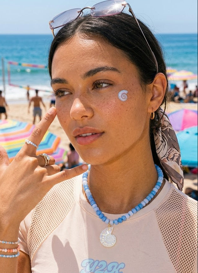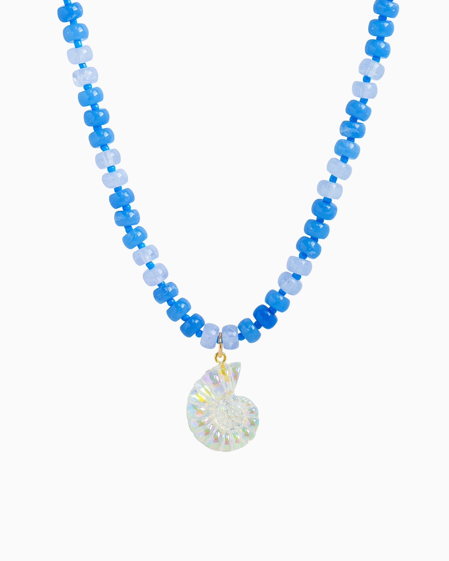Beach Mode Coastal Blue Tide Spiral Shell Beaded Necklace