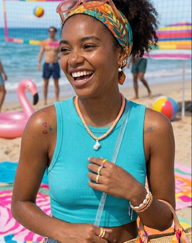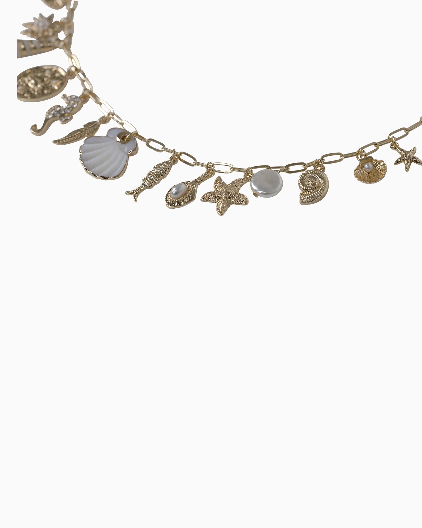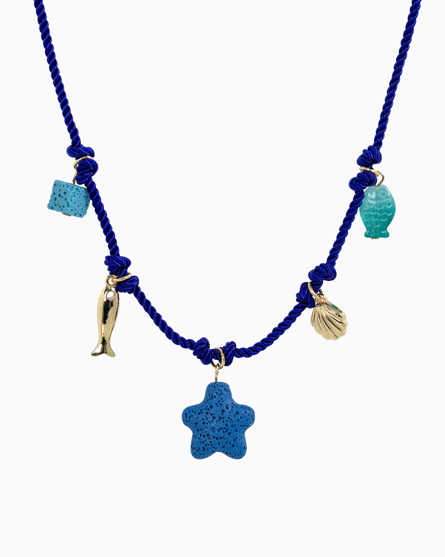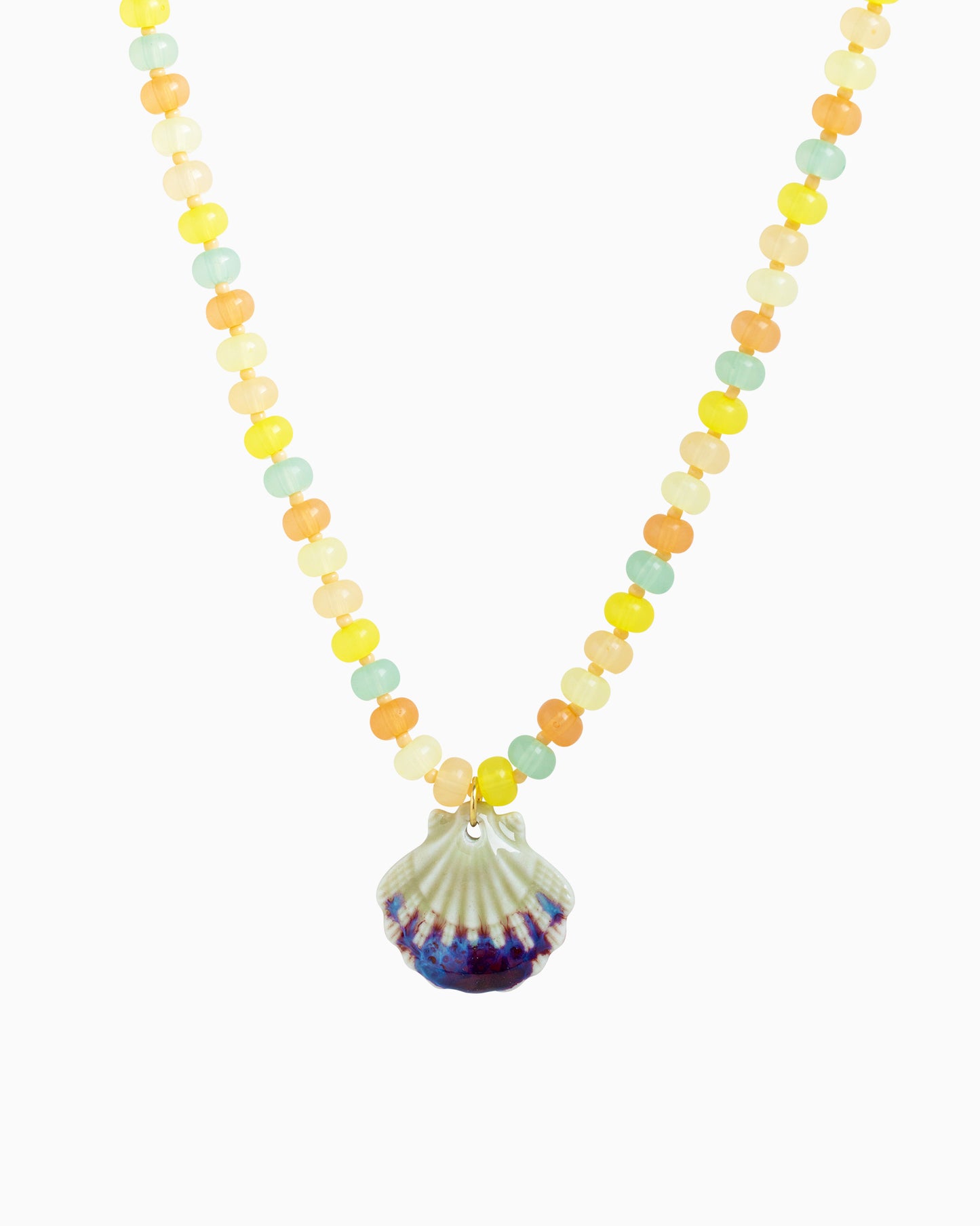 Beach Mode Coastal Blue Tide Spiral Shell Beaded Necklace