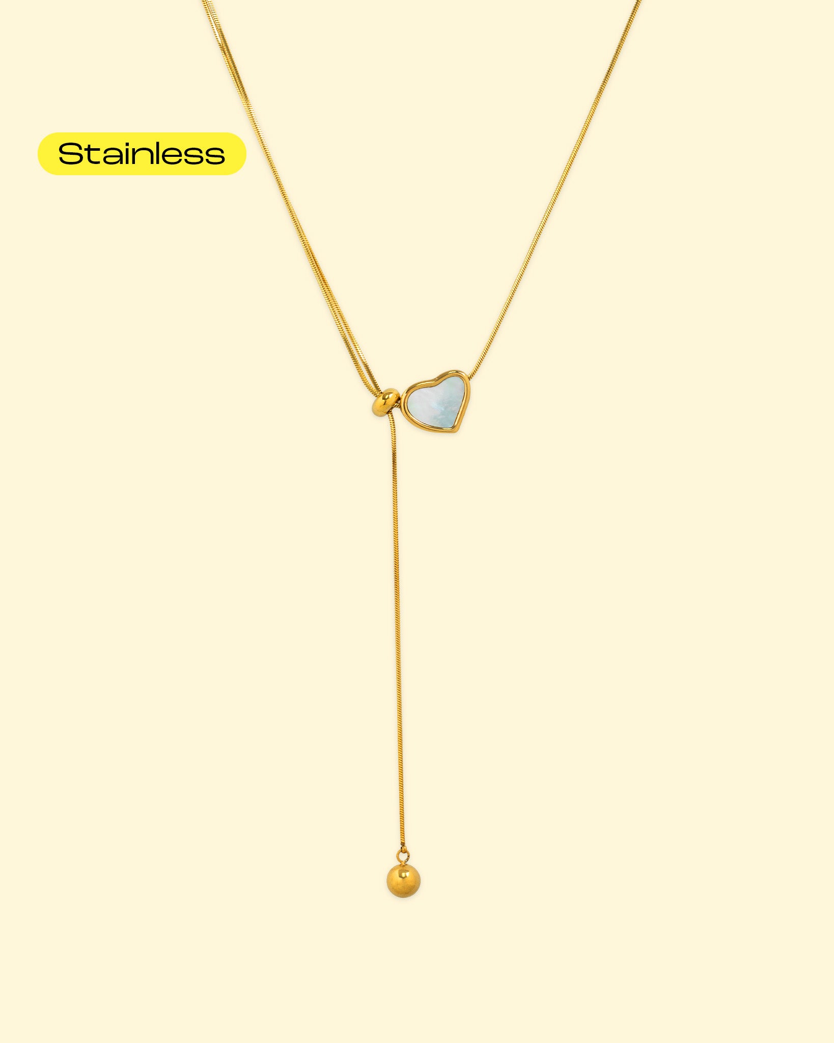 Y Drop Dainty Stone & Pearl Flower Charm Necklace