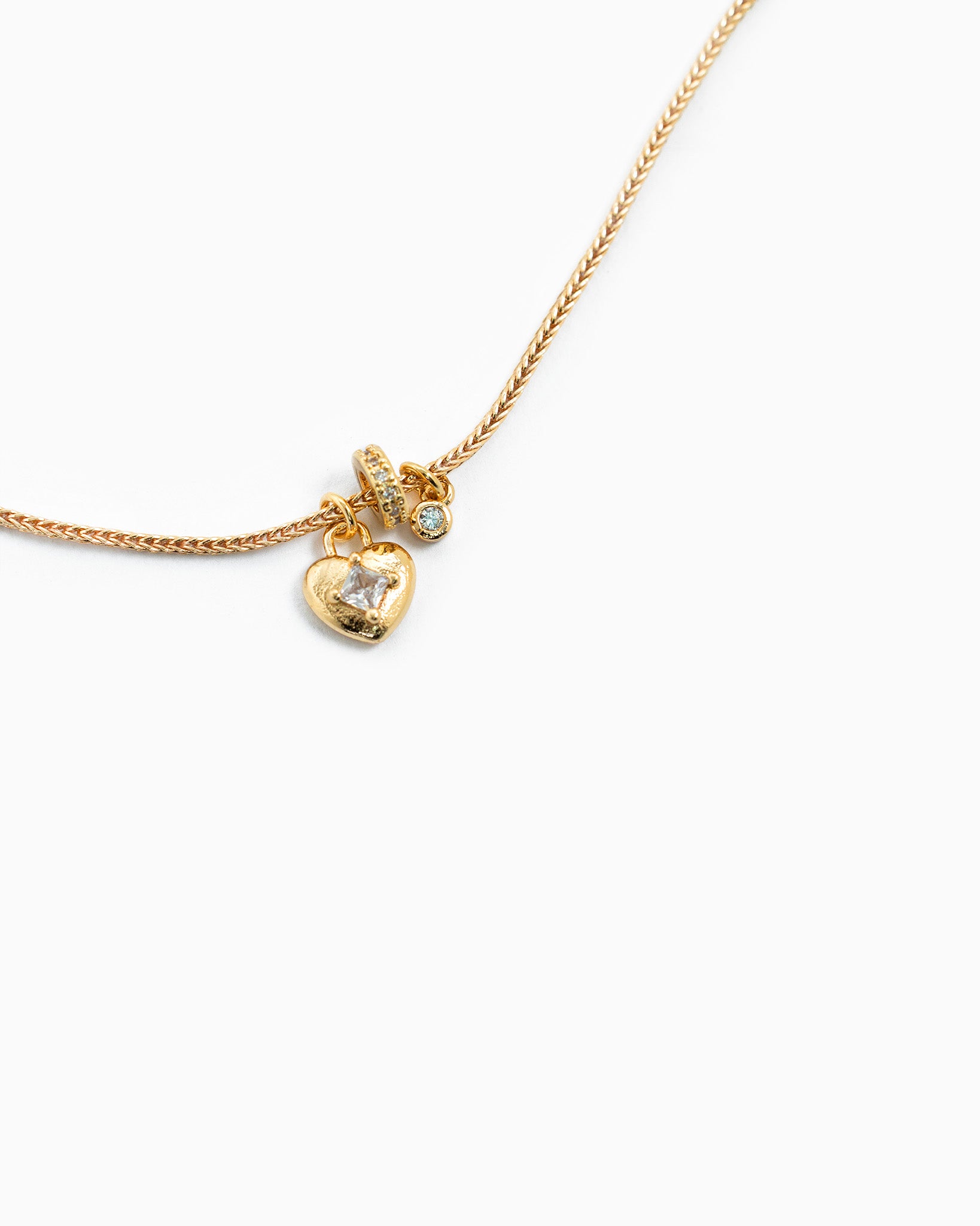 Dainty Horsebit Carabiner Heart 3 Charm Necklace