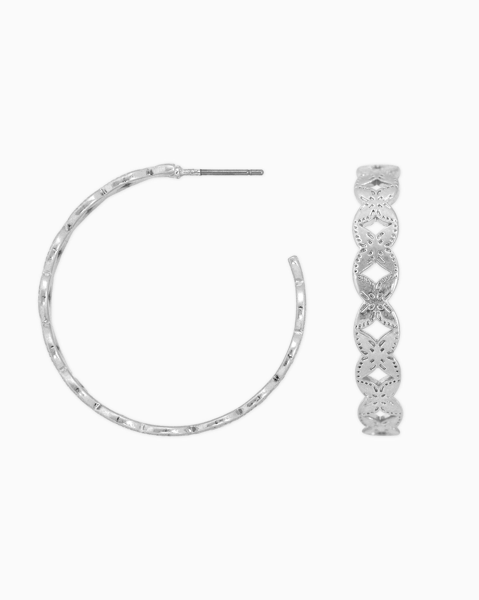 These hoops feature engraved western-style patterns that evoke vintage saddle and concho detailing, finished in a softly weathered gold/rhodium tone for a timeworn, rustic charm. A perfect balance of classic western character and modern minimal form, ideal for everyday styling with a hint of heritage flair.
