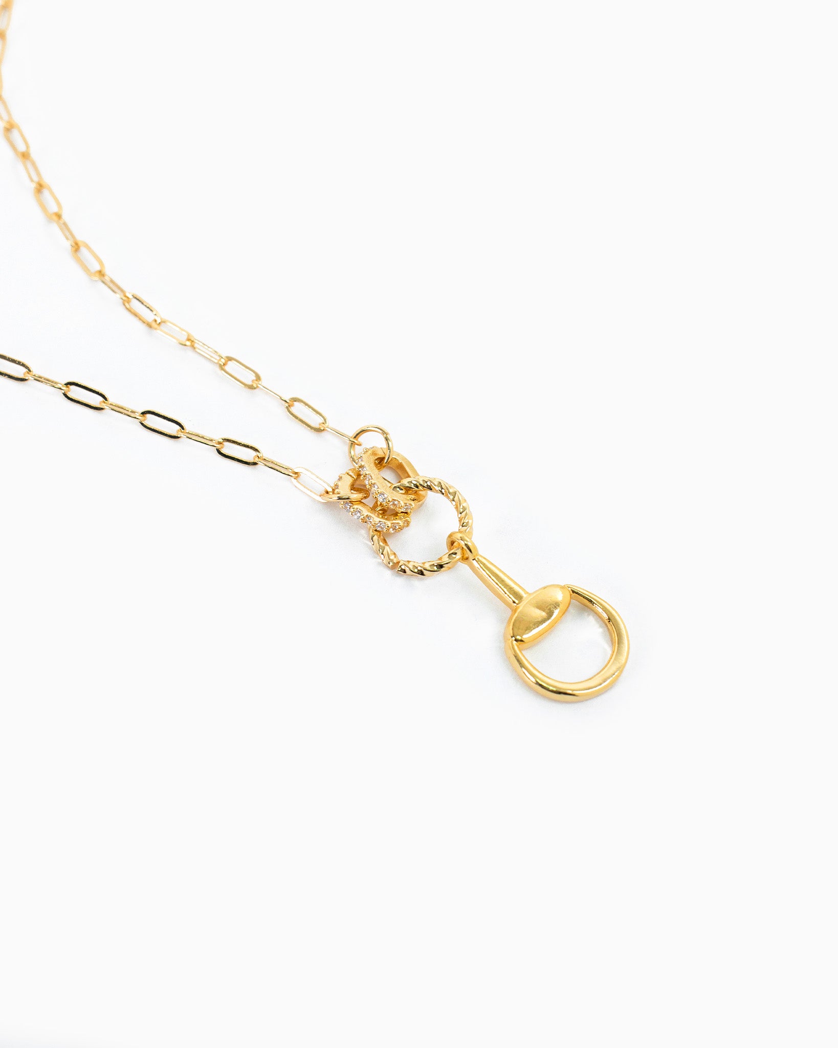 Pave Rope Link Drop Horsebit Necklace