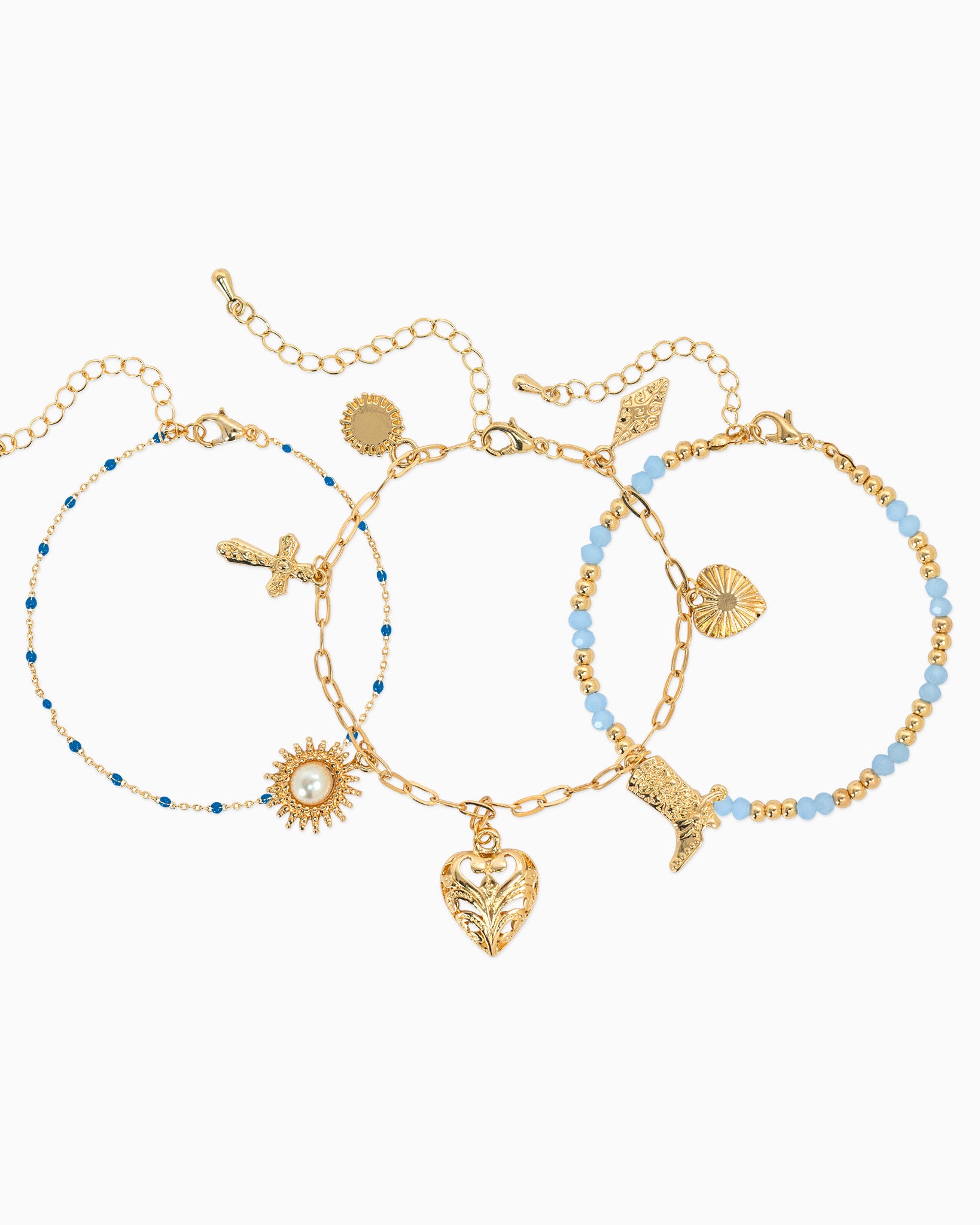 Add a pop of color to your look with this tennis charm bracelet. Featuring mini rackets, tennis balls, and pearl details, it’s a fun statement for court lovers and retro sporty styles.