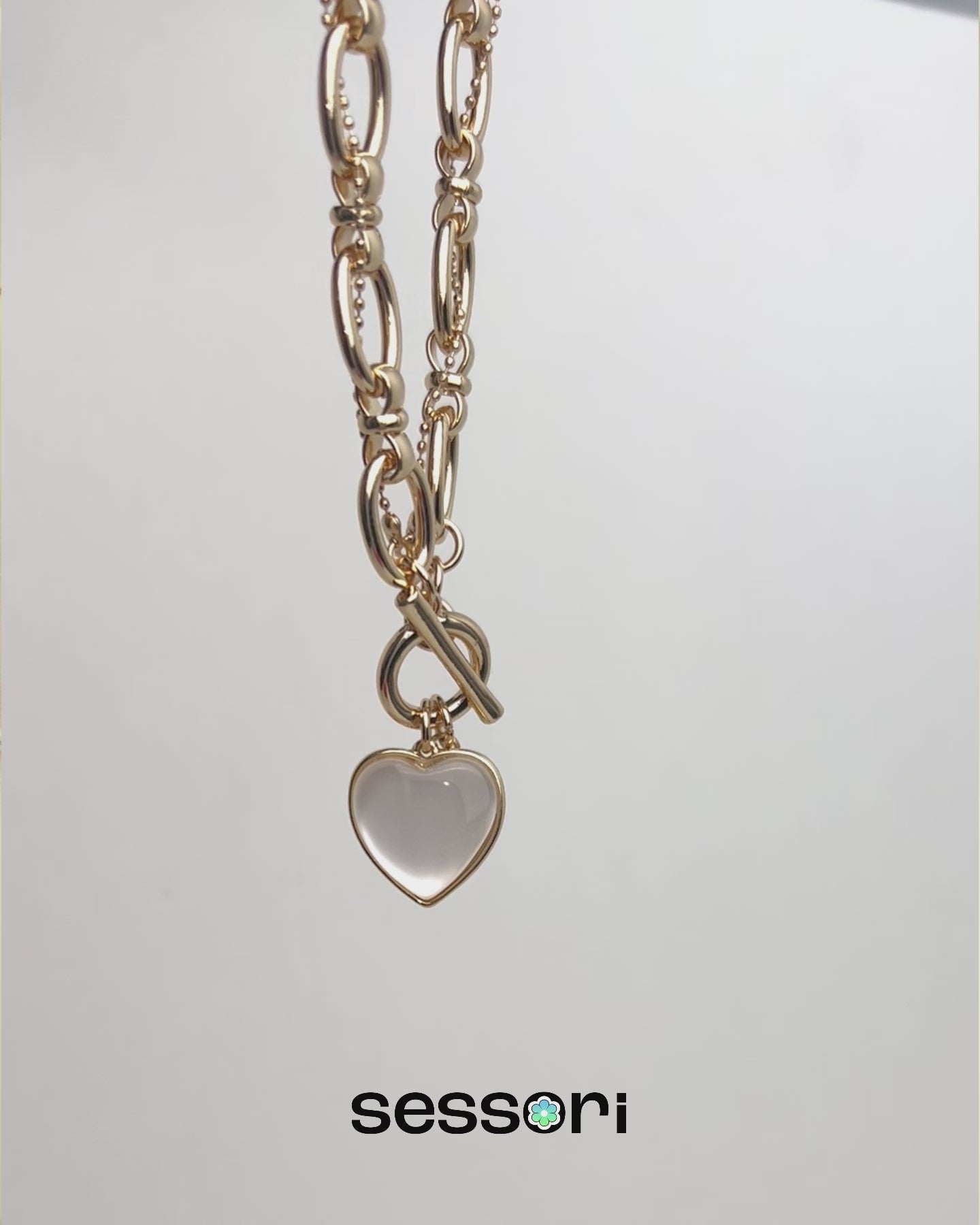 Delicate yet bold, this necklace features a mixed-chain design with a luminous heart charm and pearl accent.