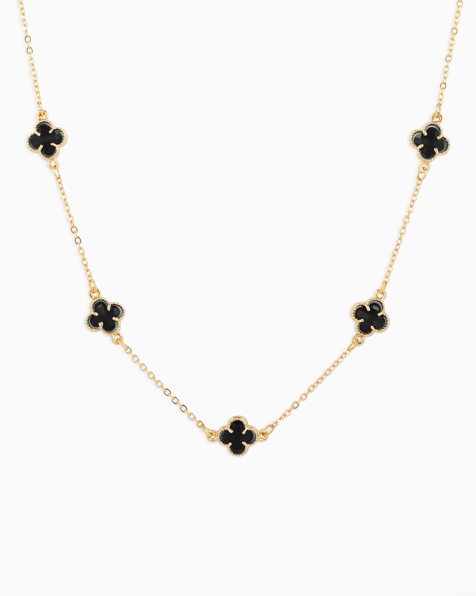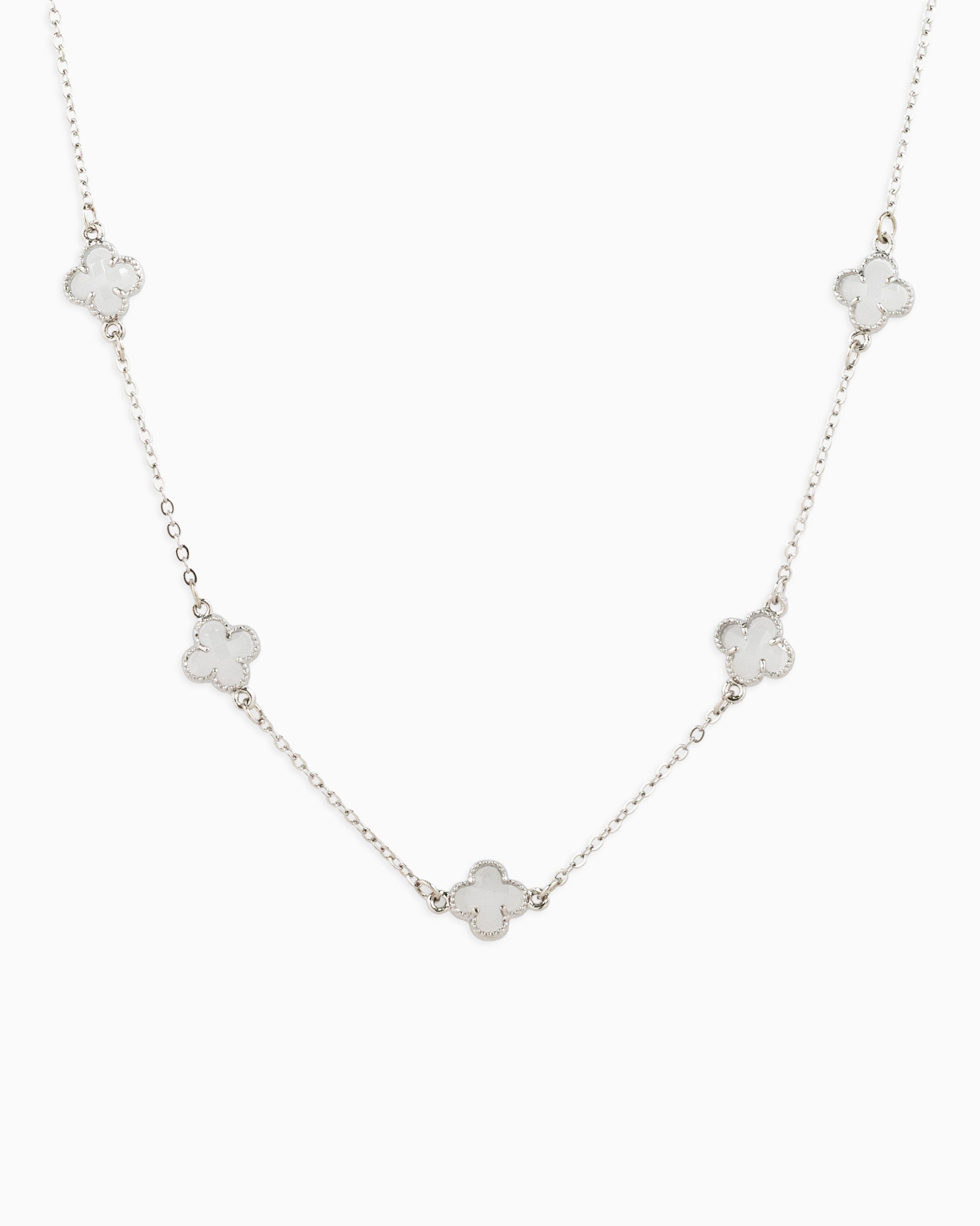 Pink Milgrain Clover Multi Charm Pendant Necklace