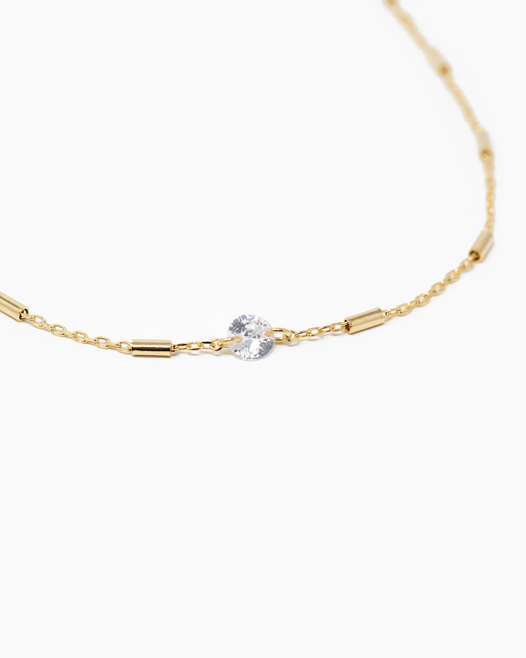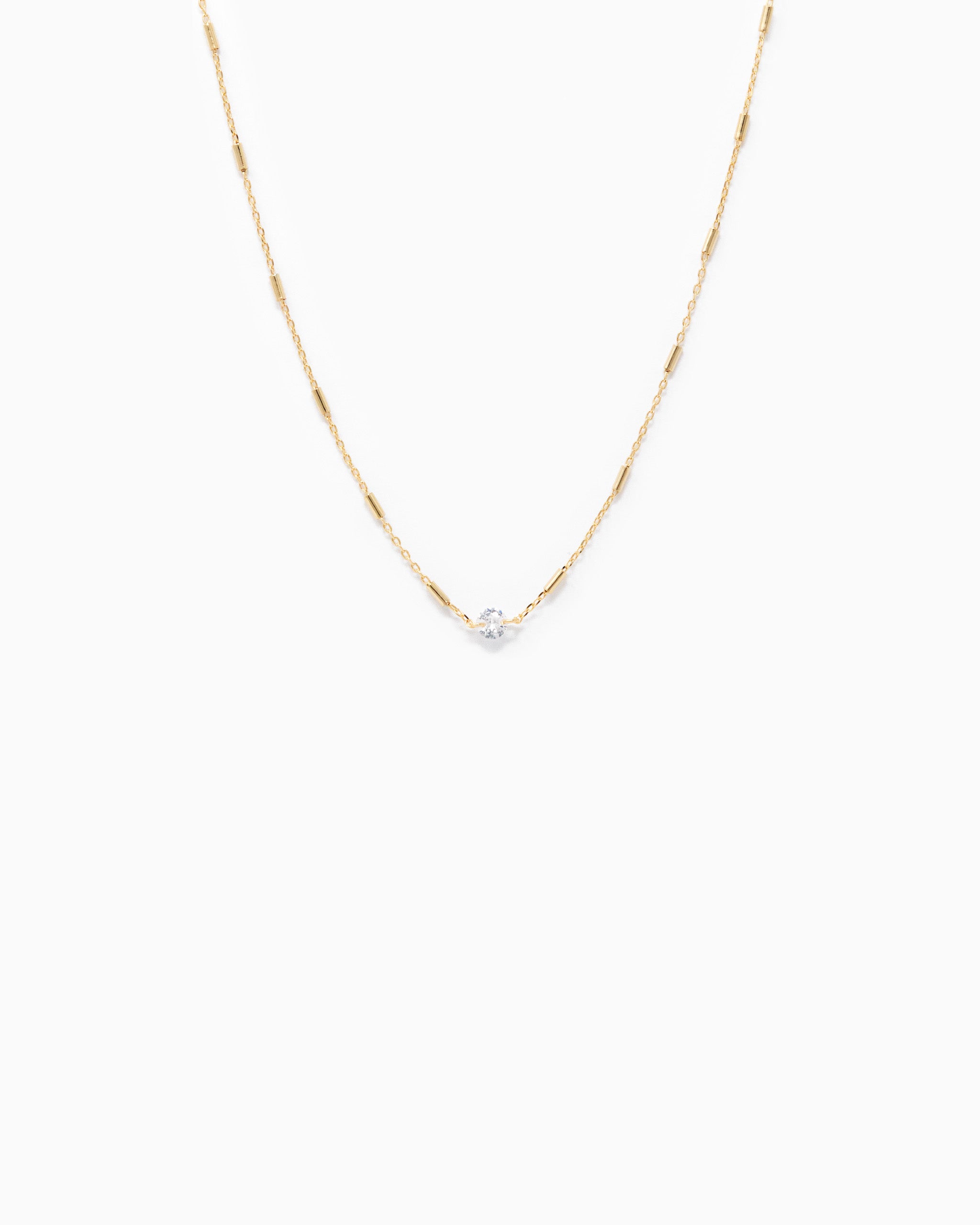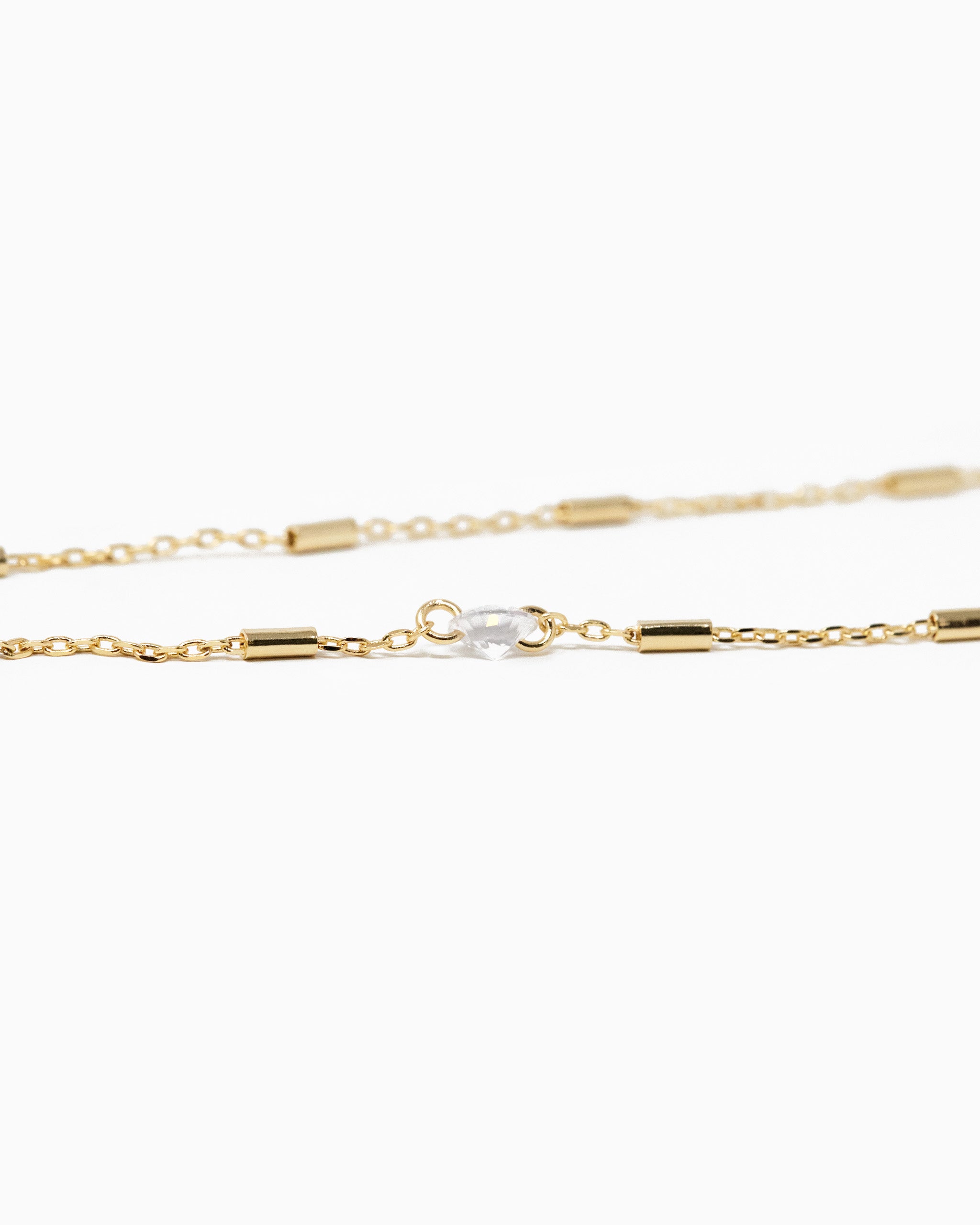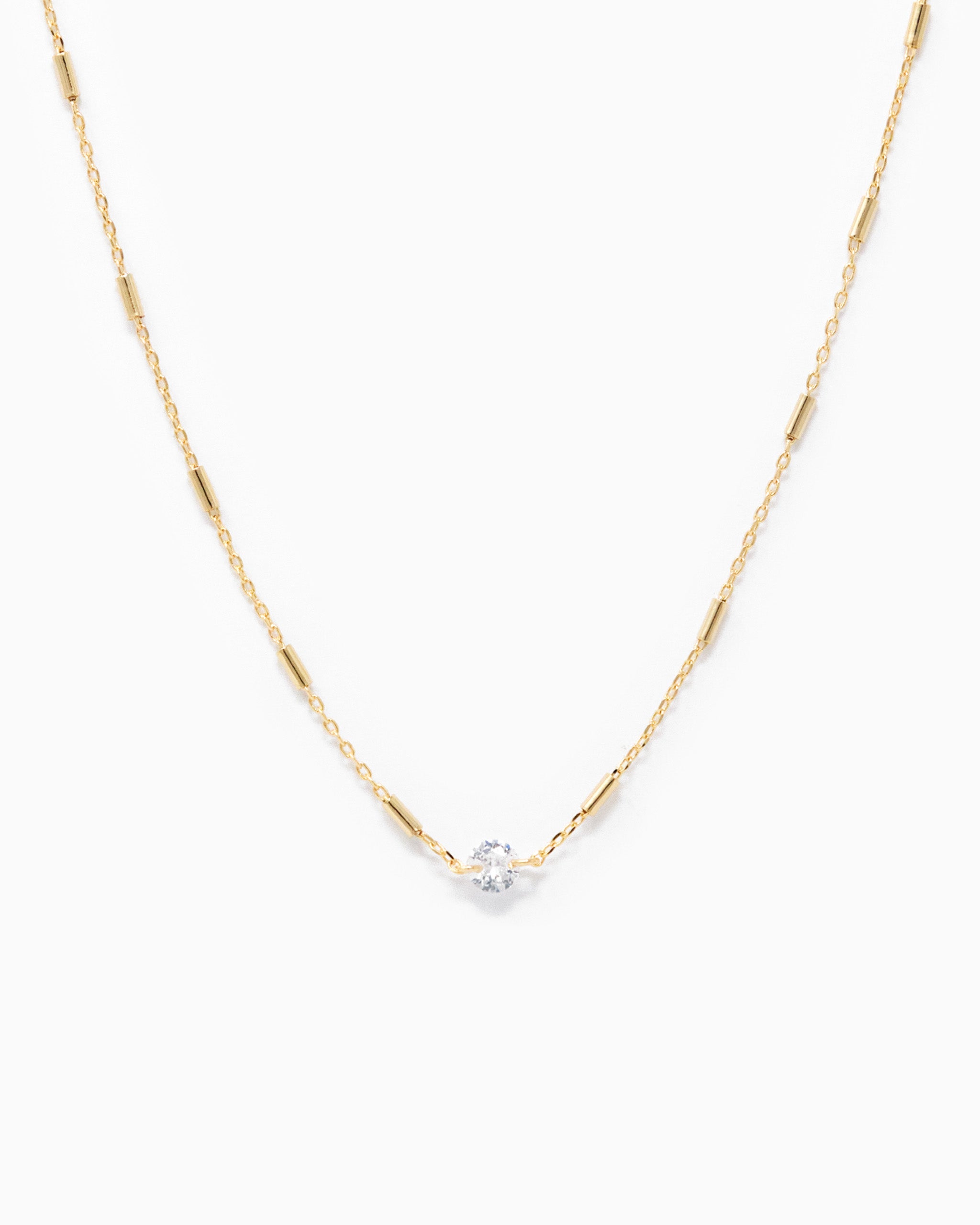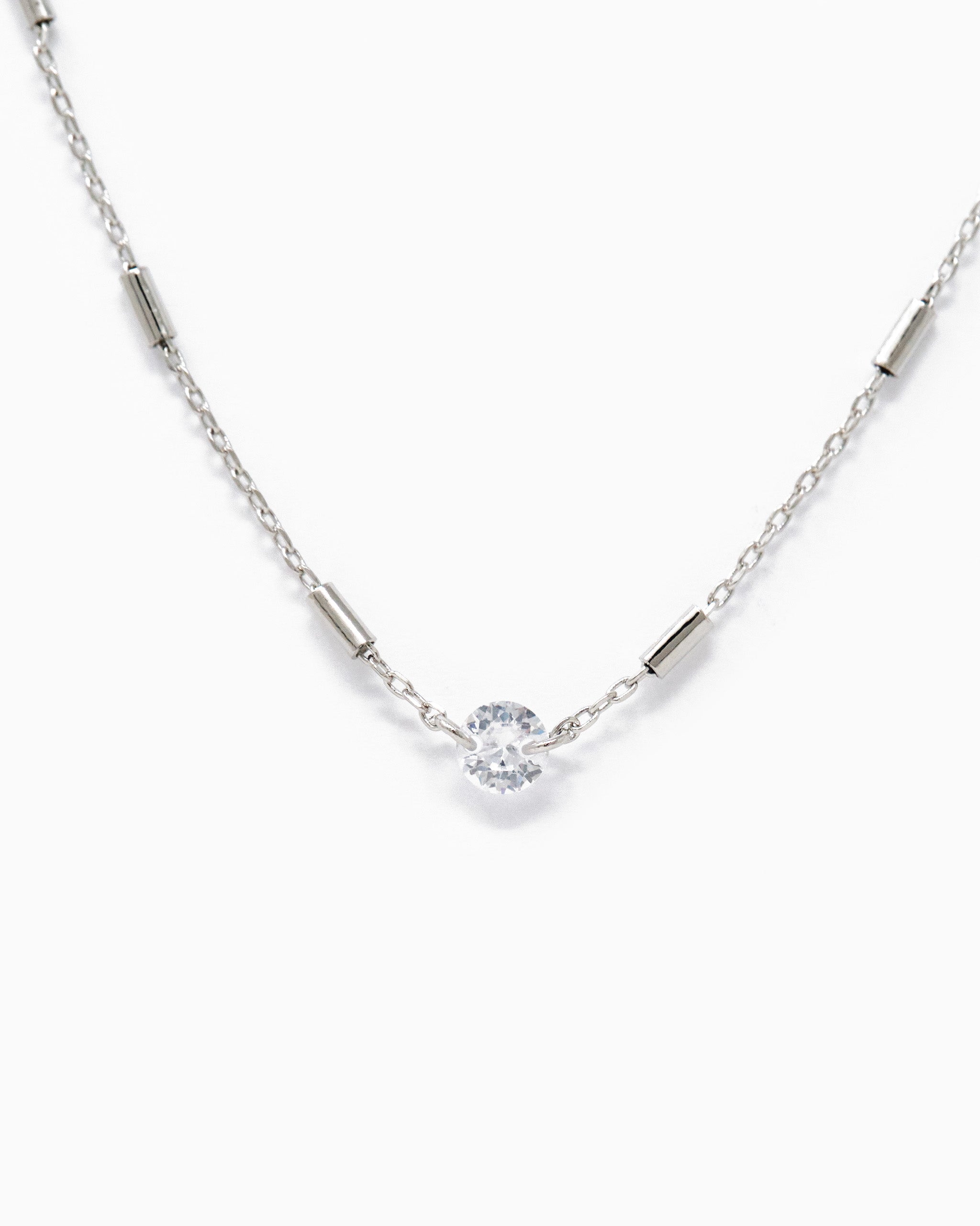 Diamond Shape CZ Pendant Bar Station Chain Necklace
