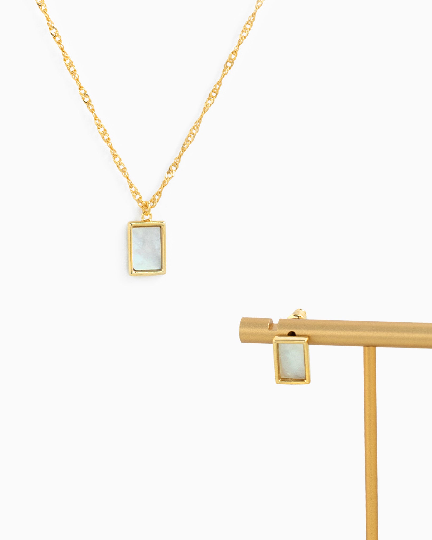 Mother of Pearl Rectangle Twist Chain Necklace
