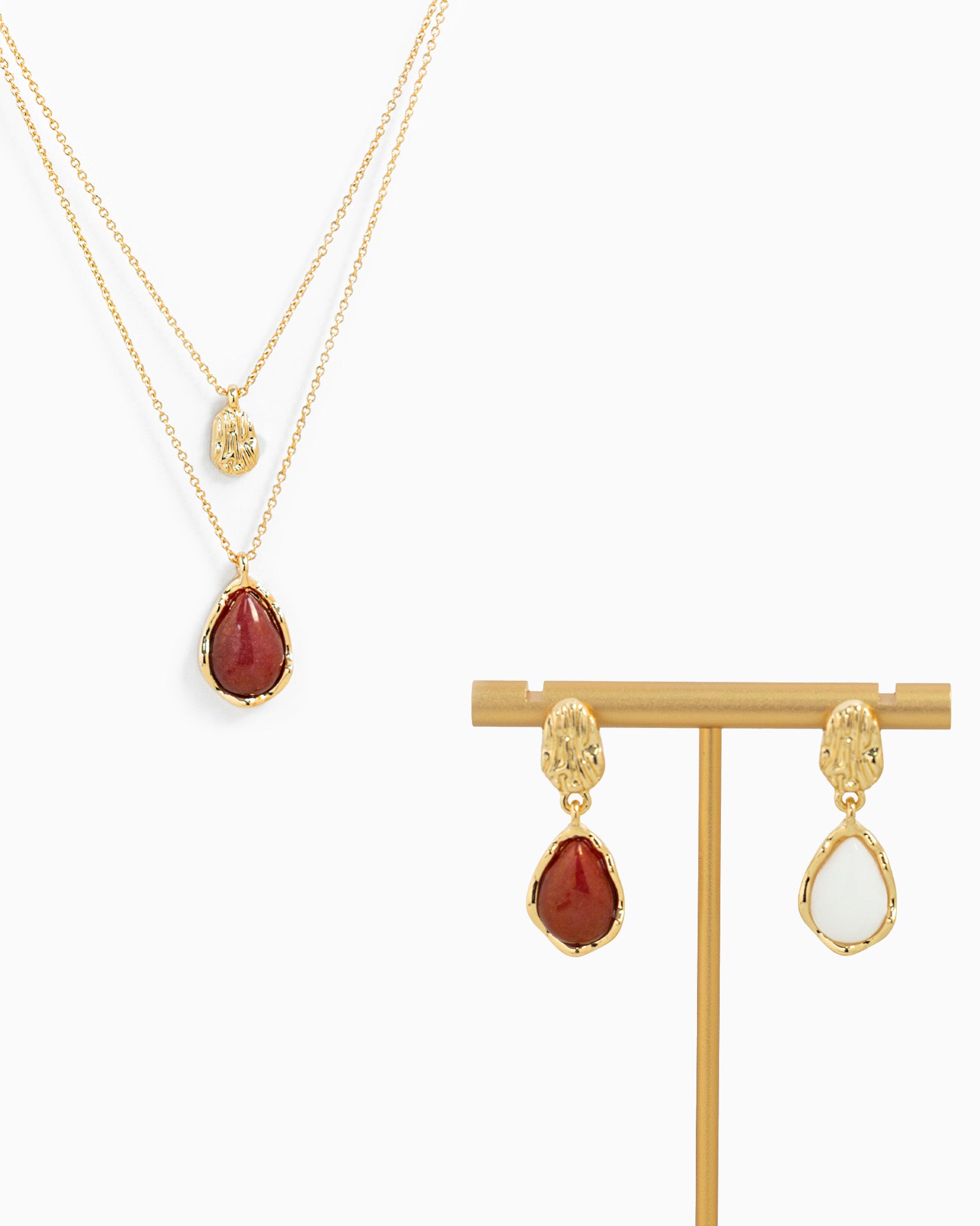 Layered Teardrop Semi Precious Stone Necklace