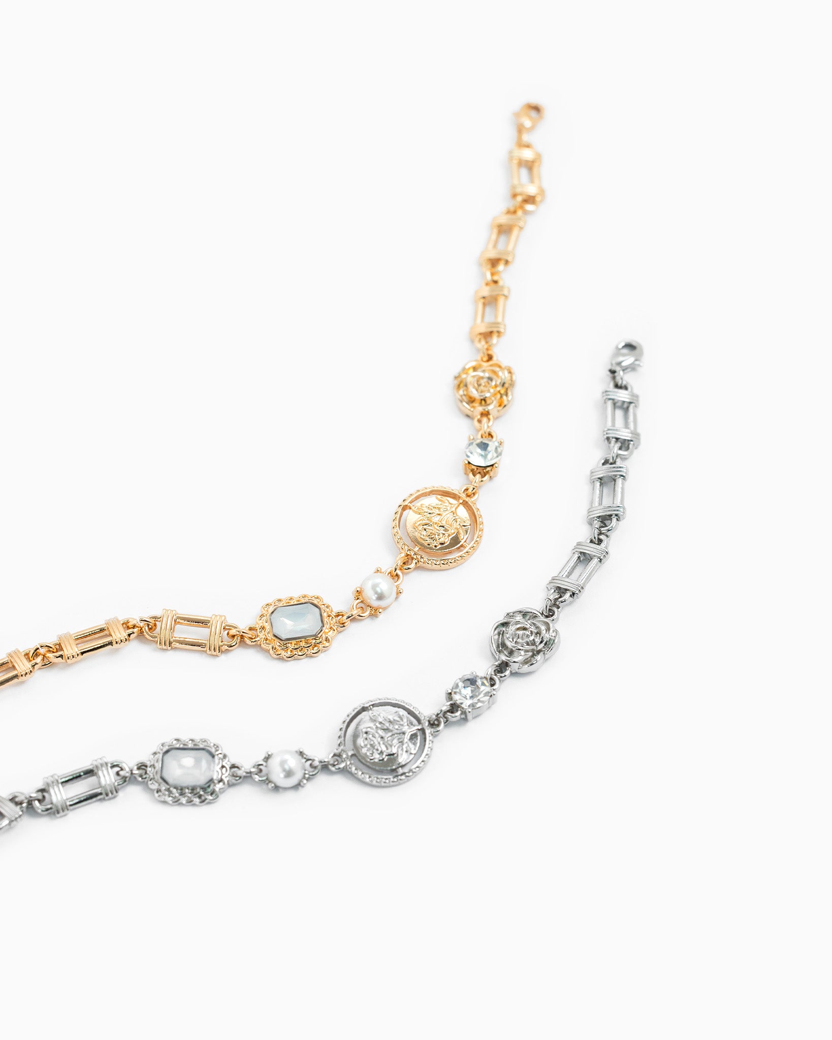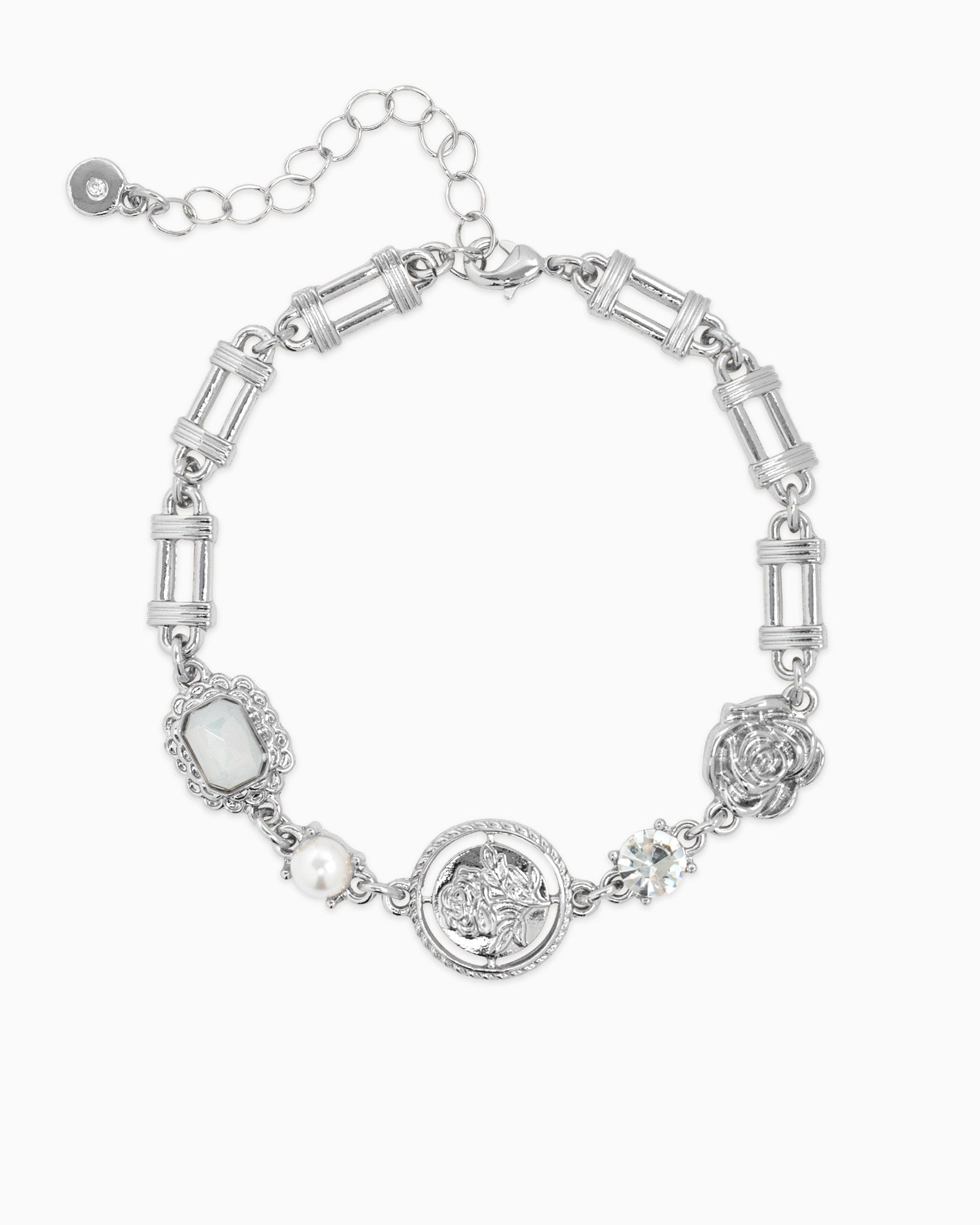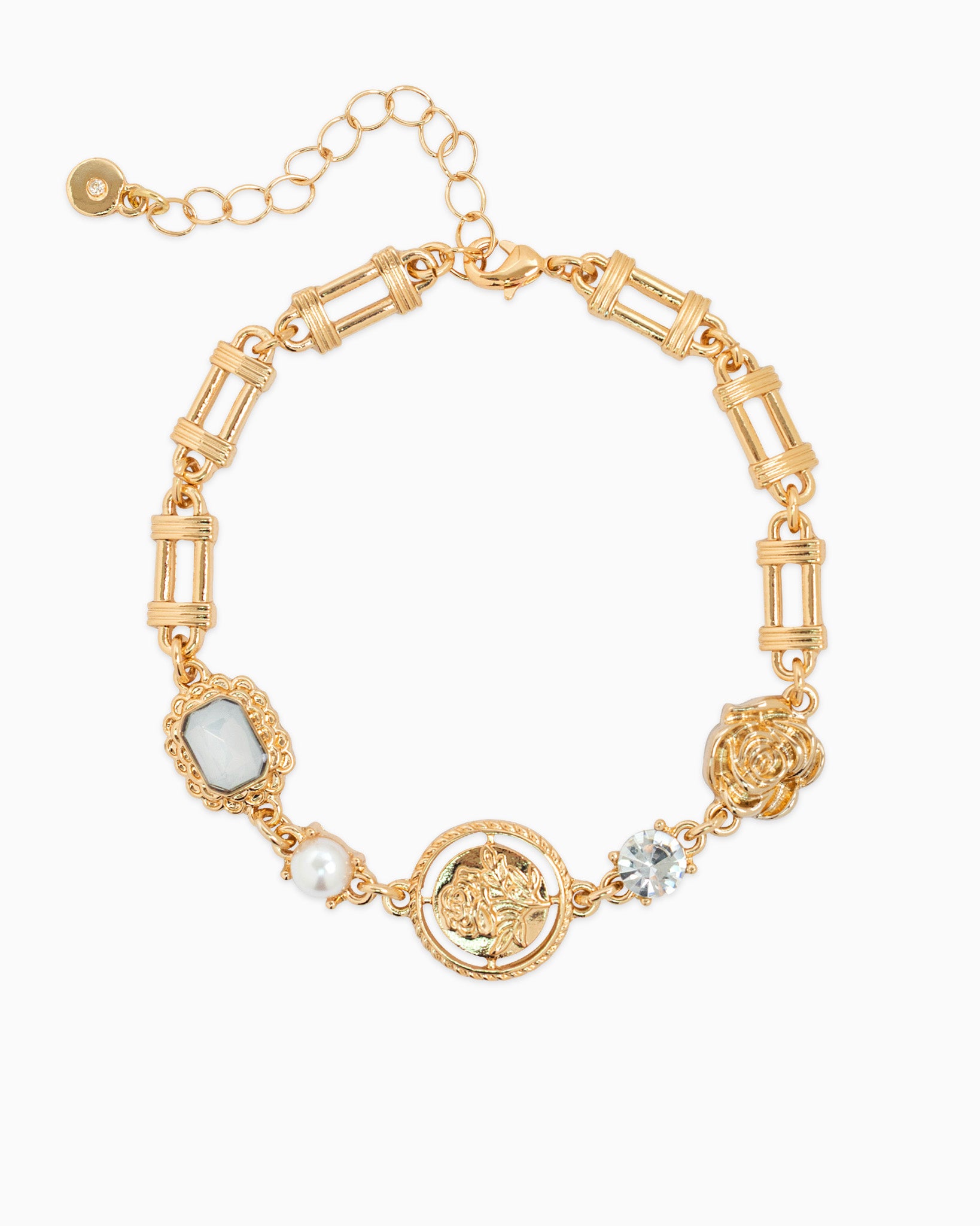 Vintage Rose Coin Stone Charm Bracelet