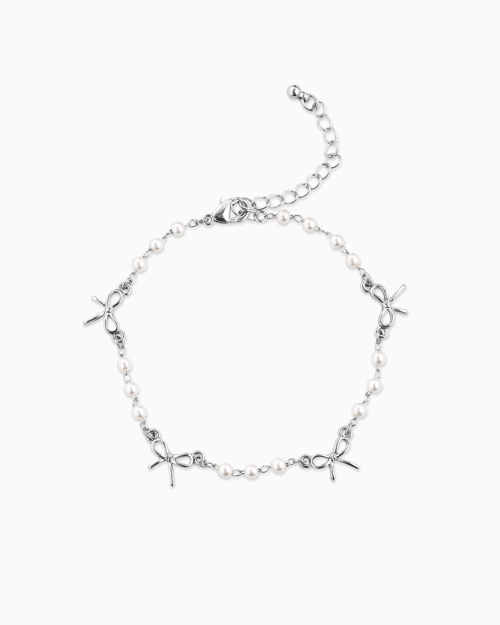 Skinny Bow Acrylic Pearl Link Station Chain Bracelet