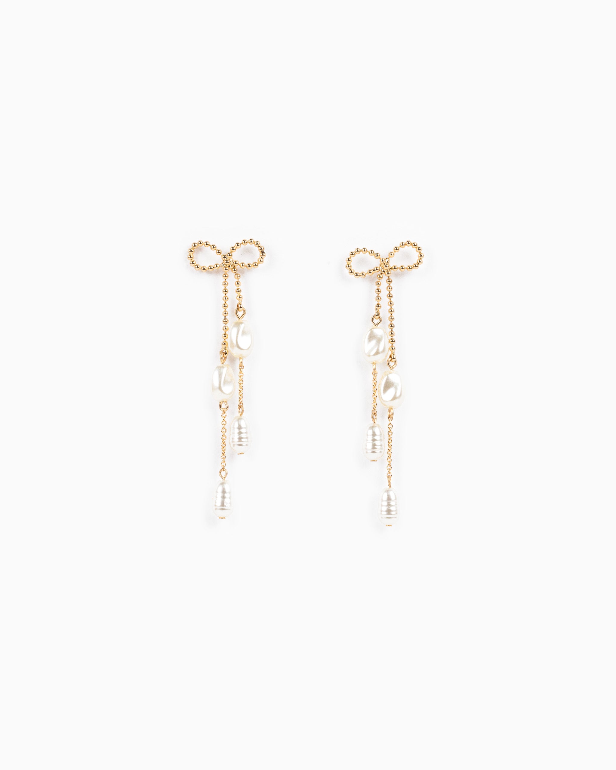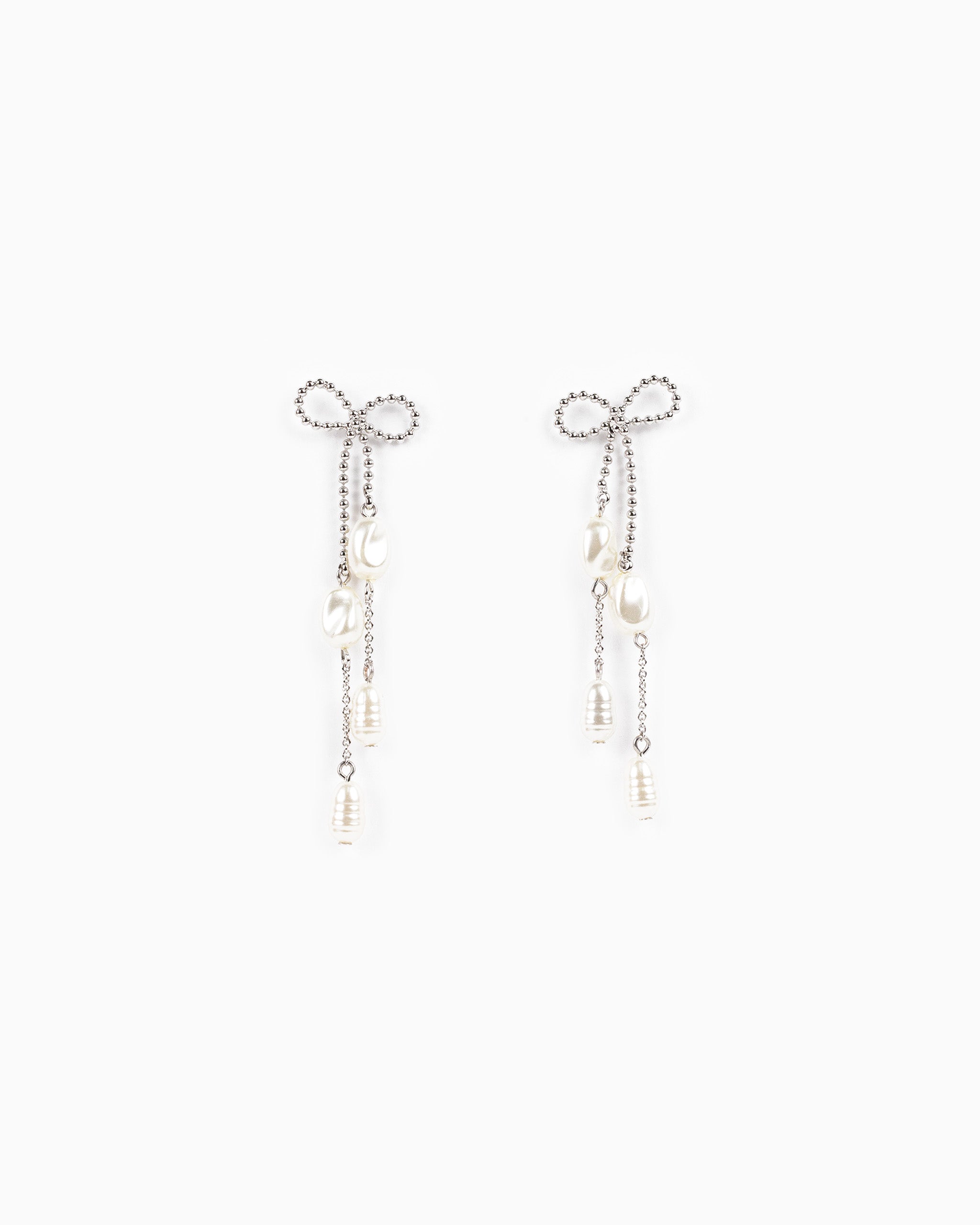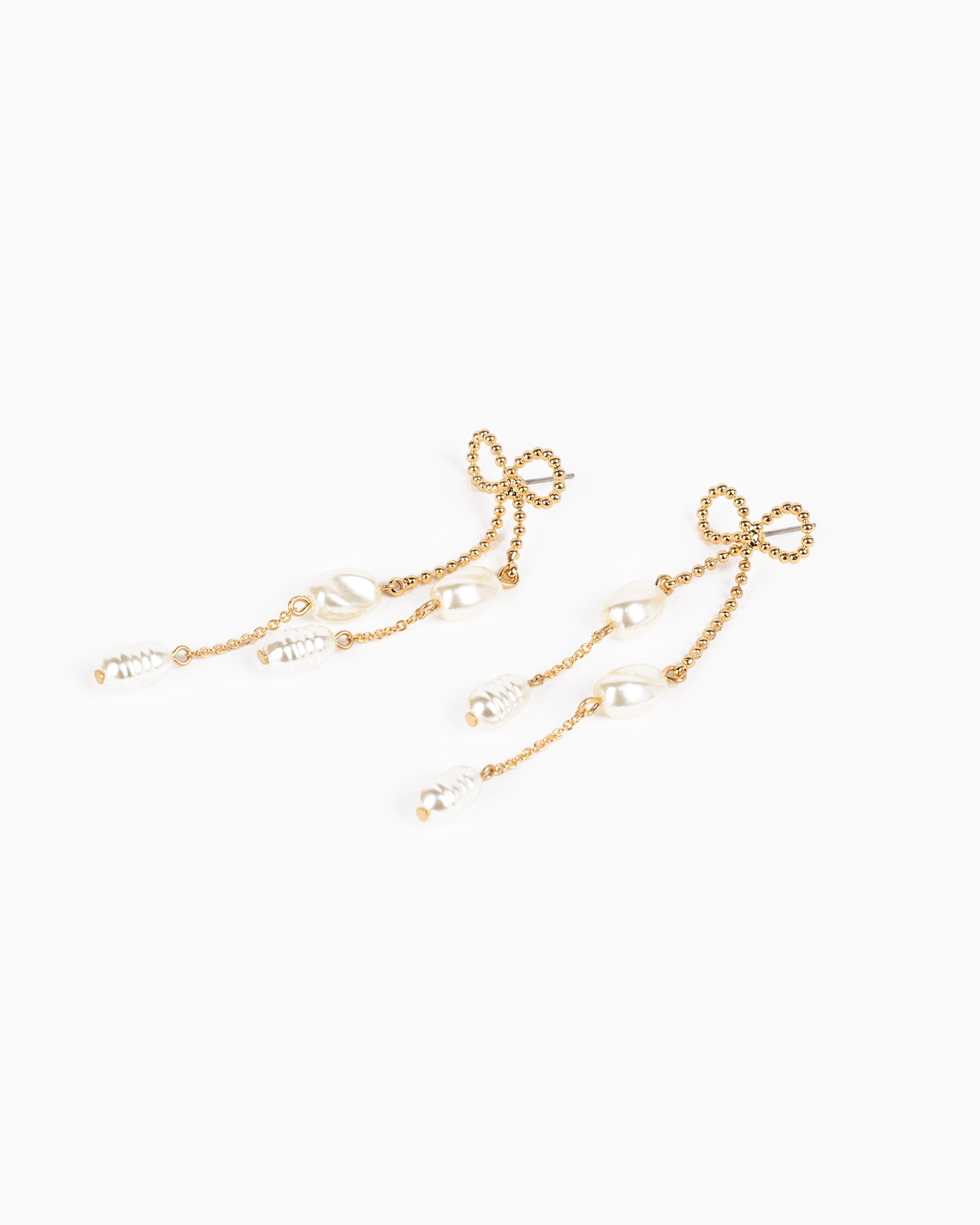 Long Bow Pearl Deco Drop Earrings