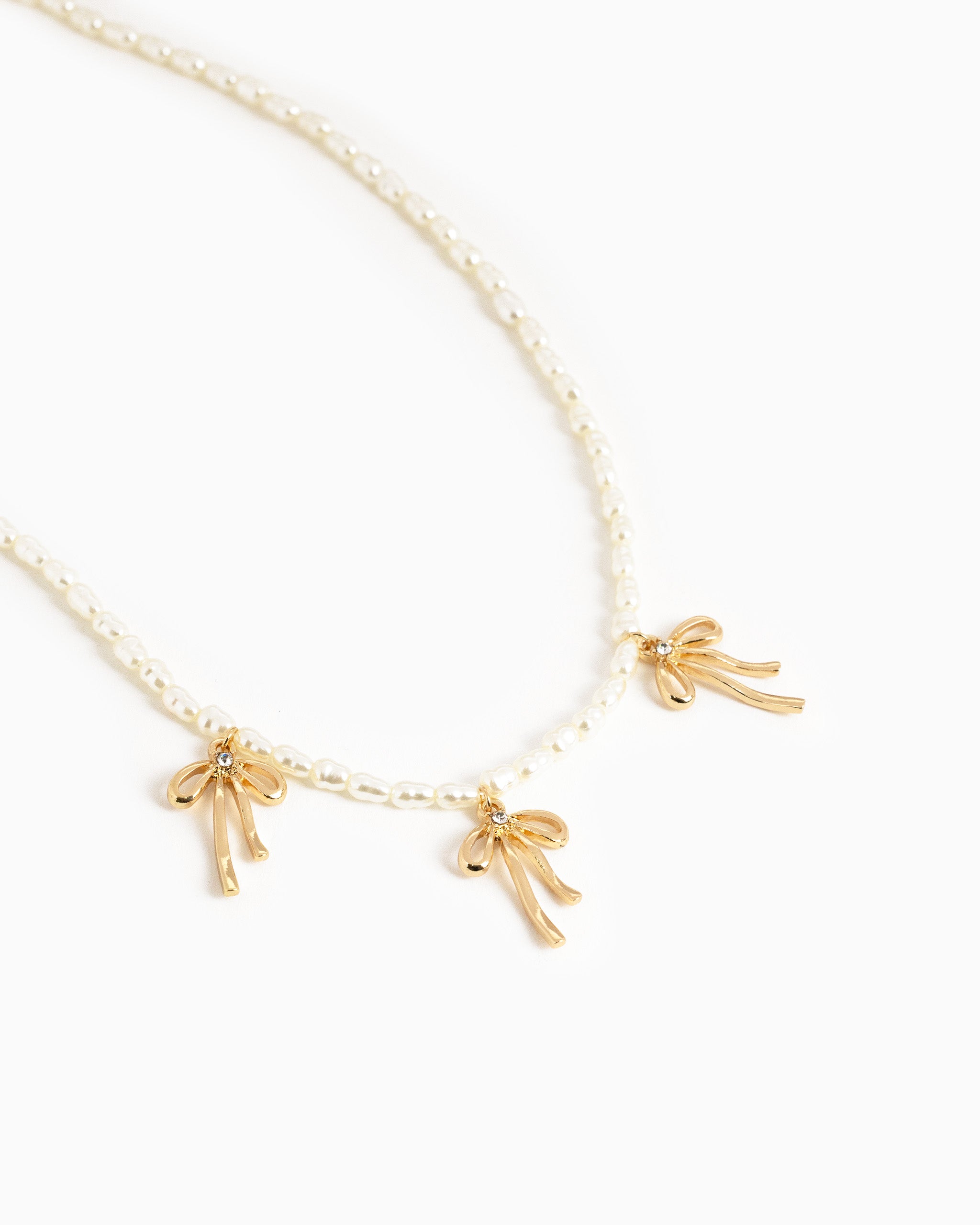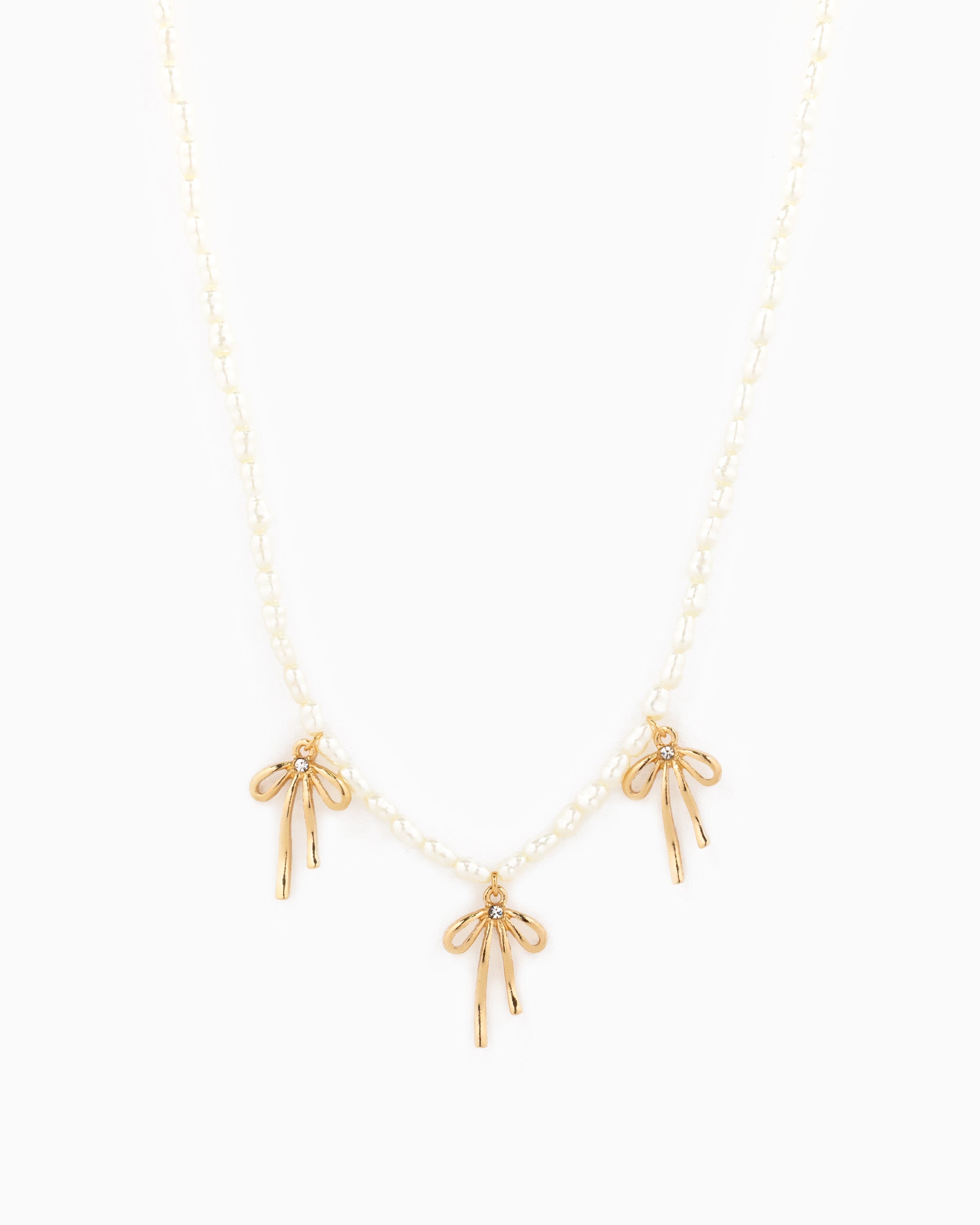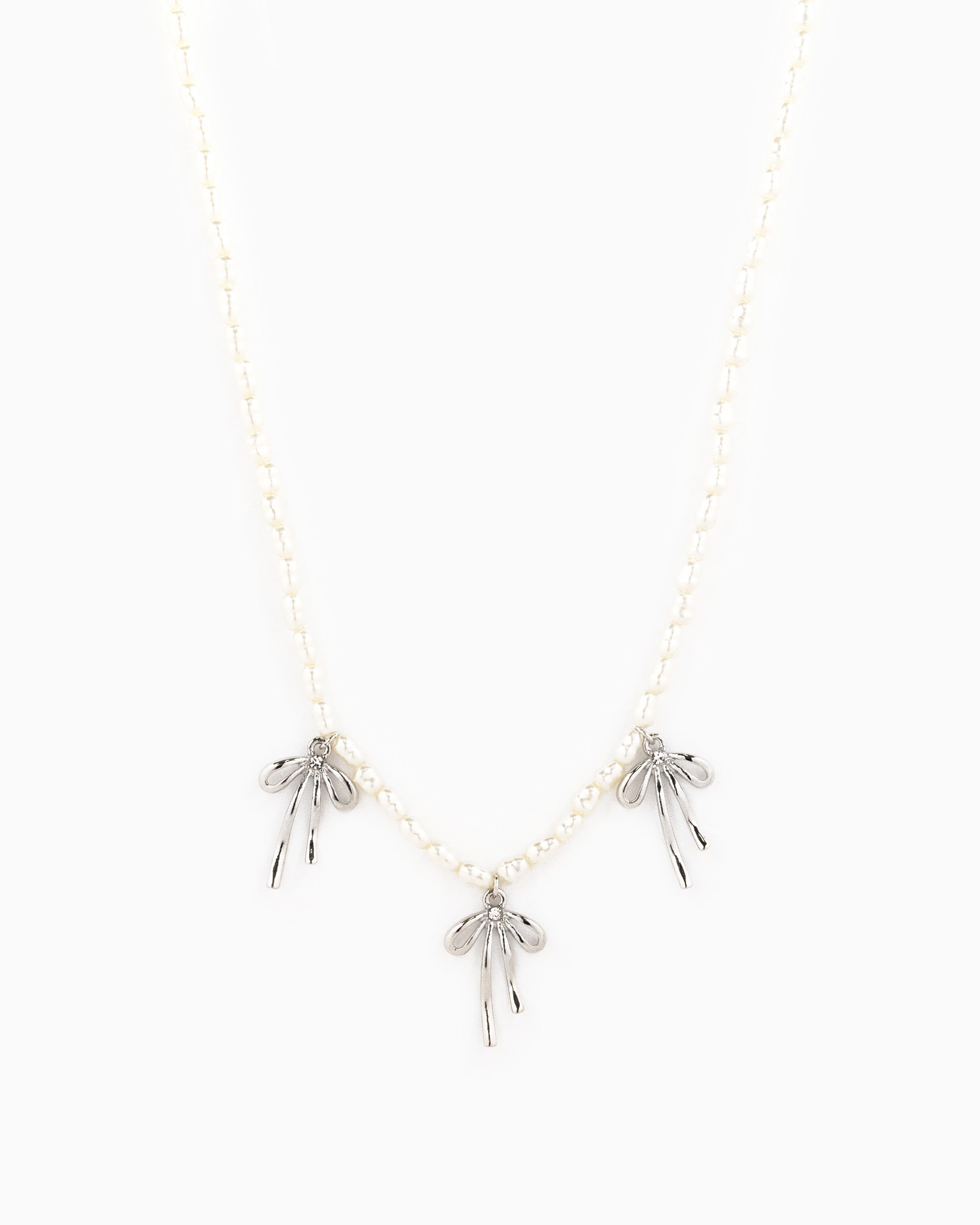 Metal Bow Station Pearl Chain Necklace