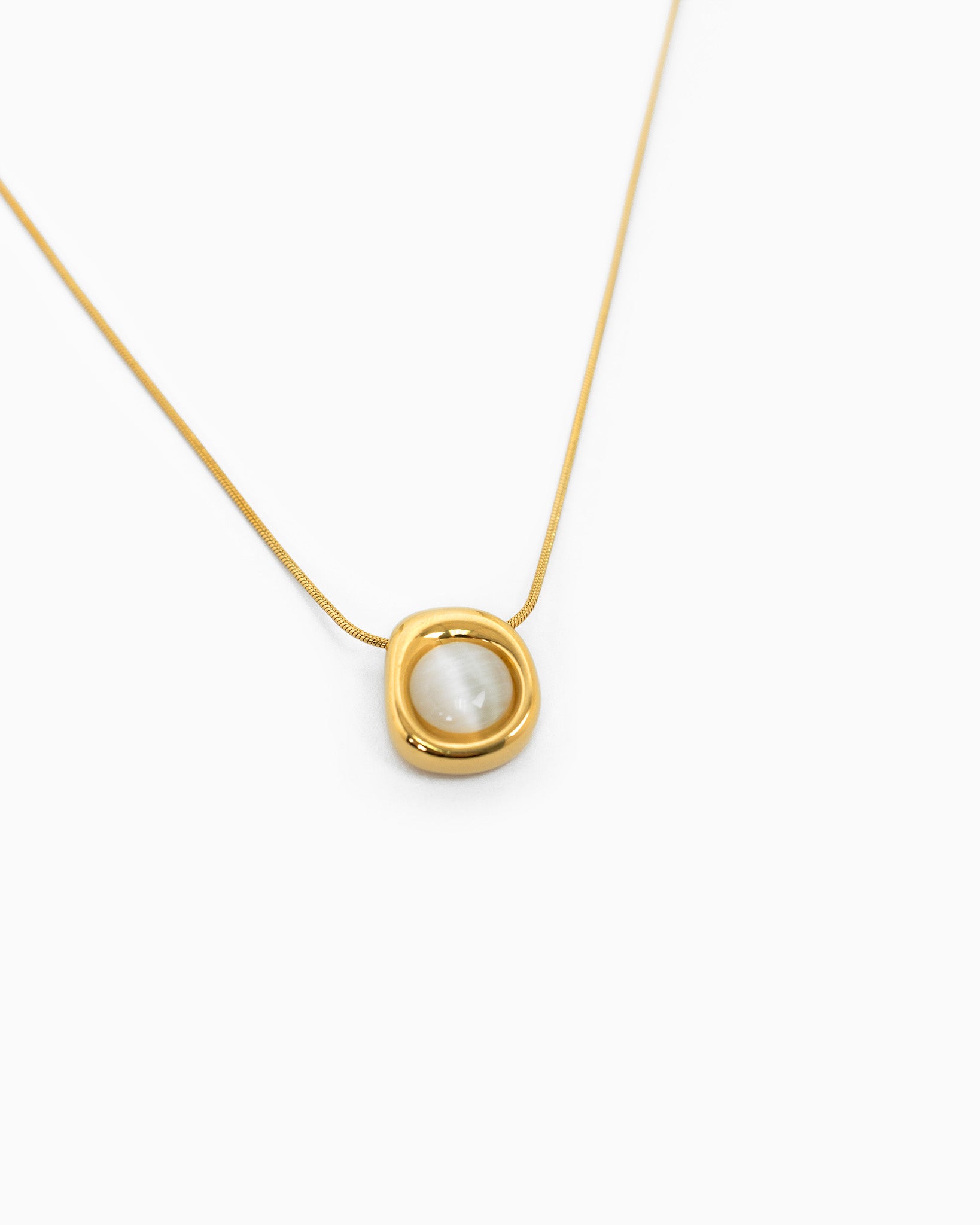 Stainless Gold Hollow Oval Frame Glass Stone Pendant Necklace