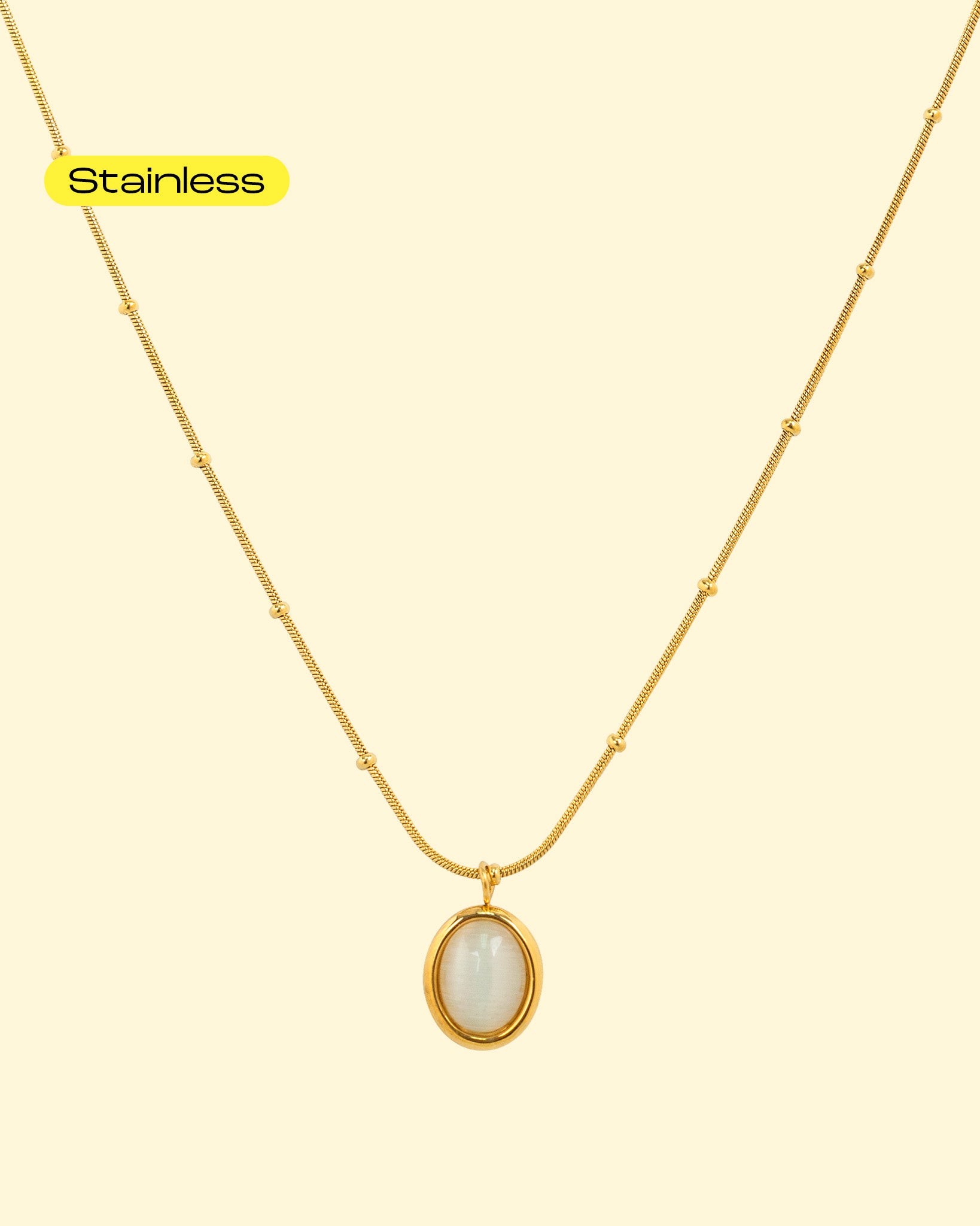 Stainless steel is a high-quality, waterproof material known for its strength, durability, and resistance to tarnish and corrosion. Perfect for long-lasting shine and everyday wear.