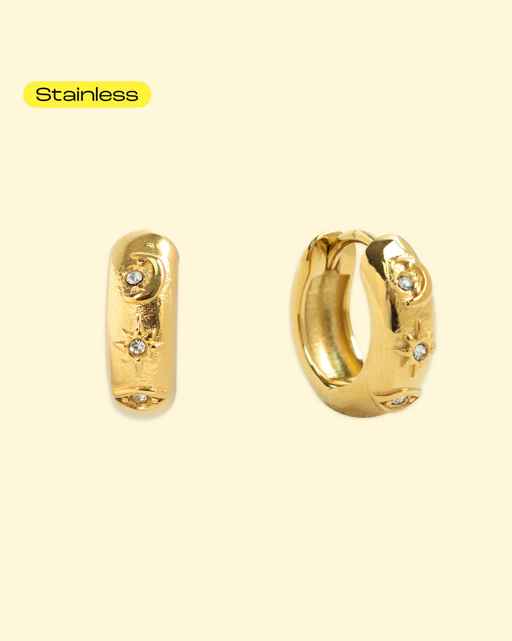 Western Turquoise Sun, Moon & Star Charm Hoop Earrings capturing the spirit of the open desert sky. These antique silver hoops feature turquoise center stones framed in sunburst detailing, paired with dangling star, moon, and bead charms for a touch of celestial western magic.
