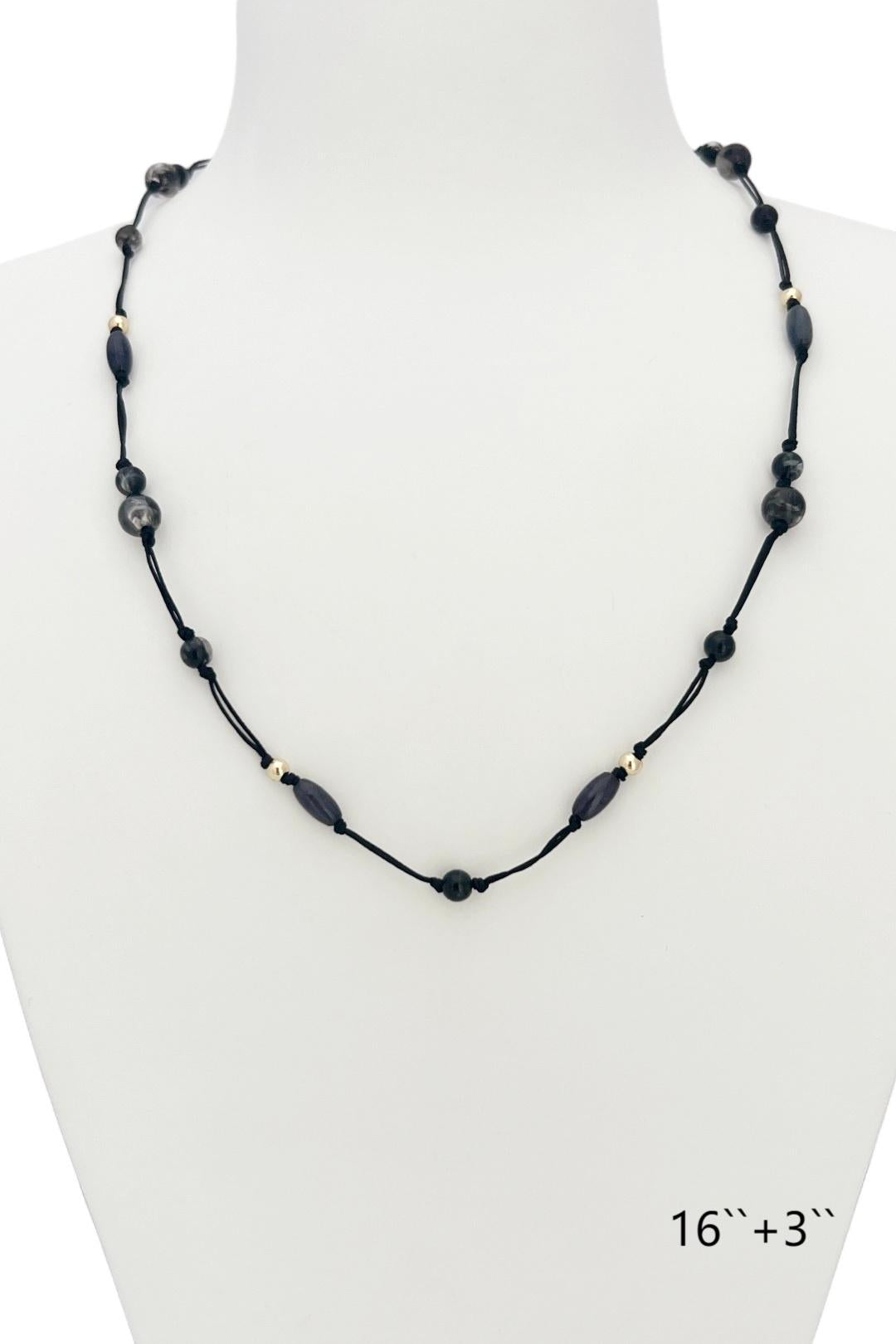 Artful texture meets everyday ease. This lightweight necklace features multi-sized marbled beads strung along a fine knotted cord, creating a relaxed yet refined look.