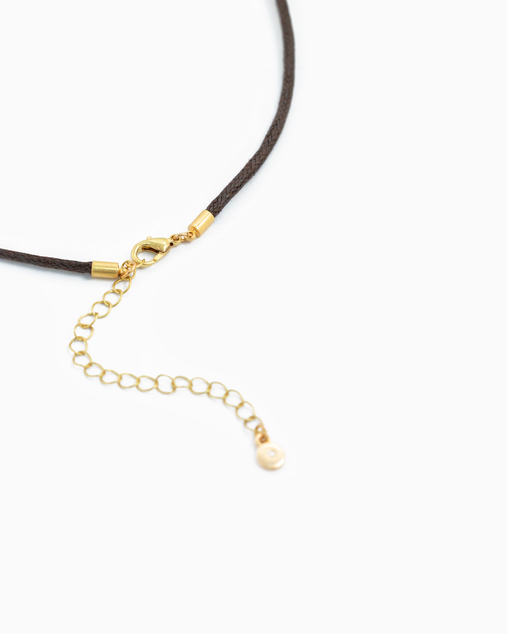 Materials: Steel, Brass, Zinc, Acrylic Pearl, Cord