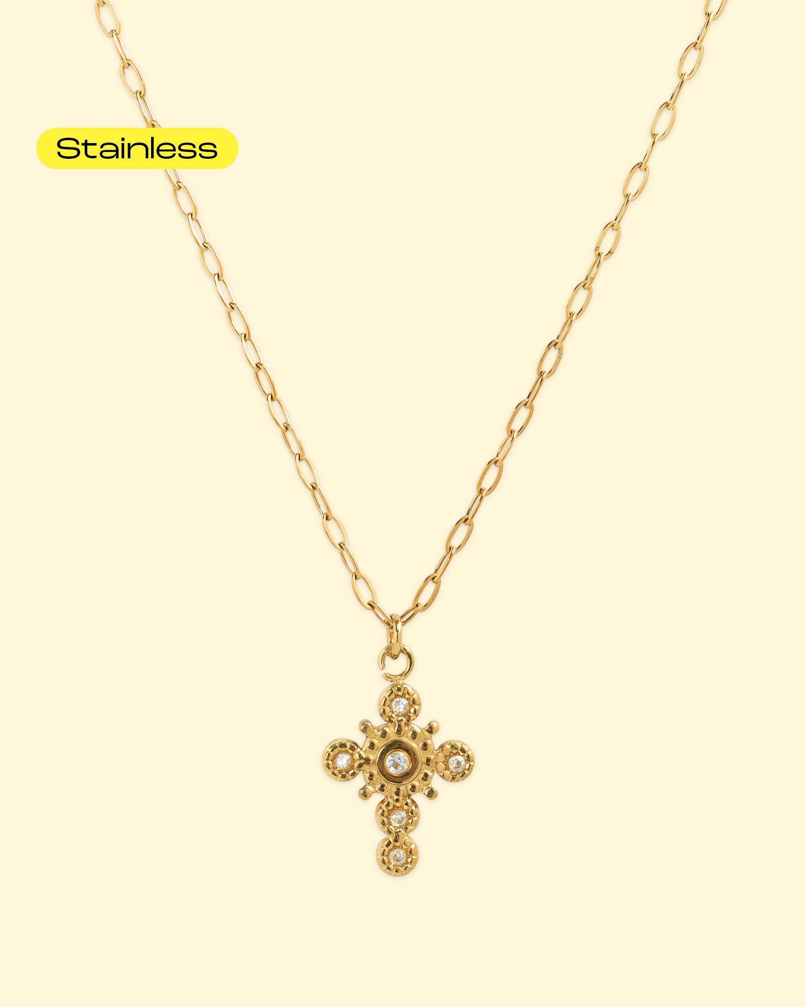 A bold, hammered oversized star pendant in a worn gold finish, delivering a cool, trend-forward silhouette with a vintage-inspired edge.