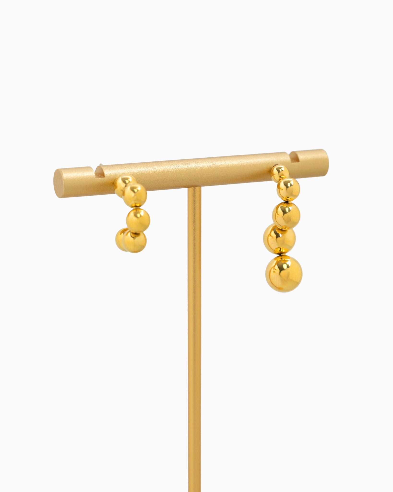 [SESSORI EXCLUSIVE] A modern half-hoop silhouette featuring a vertical cascade of polished stainless spheres. Waterproof, tarnish-resistant, and built for long-lasting shine.