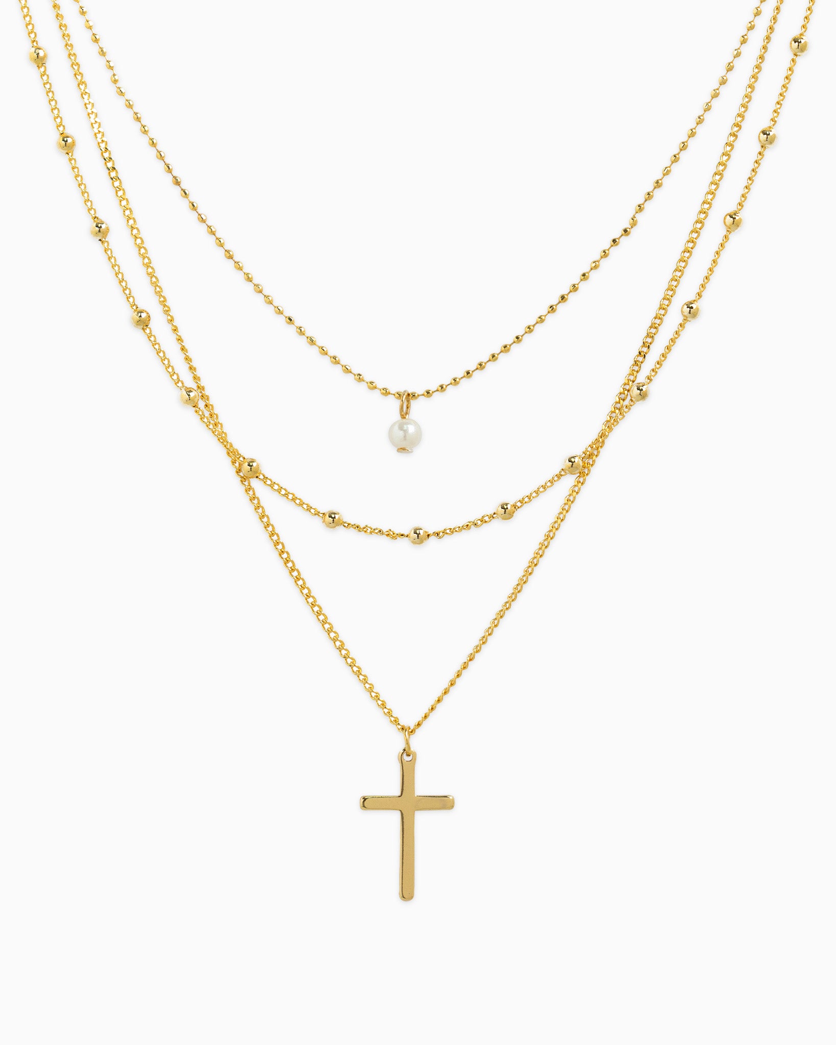 This standout necklace features a knotted paisley scarf chain adorned with gold-toned charms—including a crystal cross, hearts, and vintage-inspired emblems.