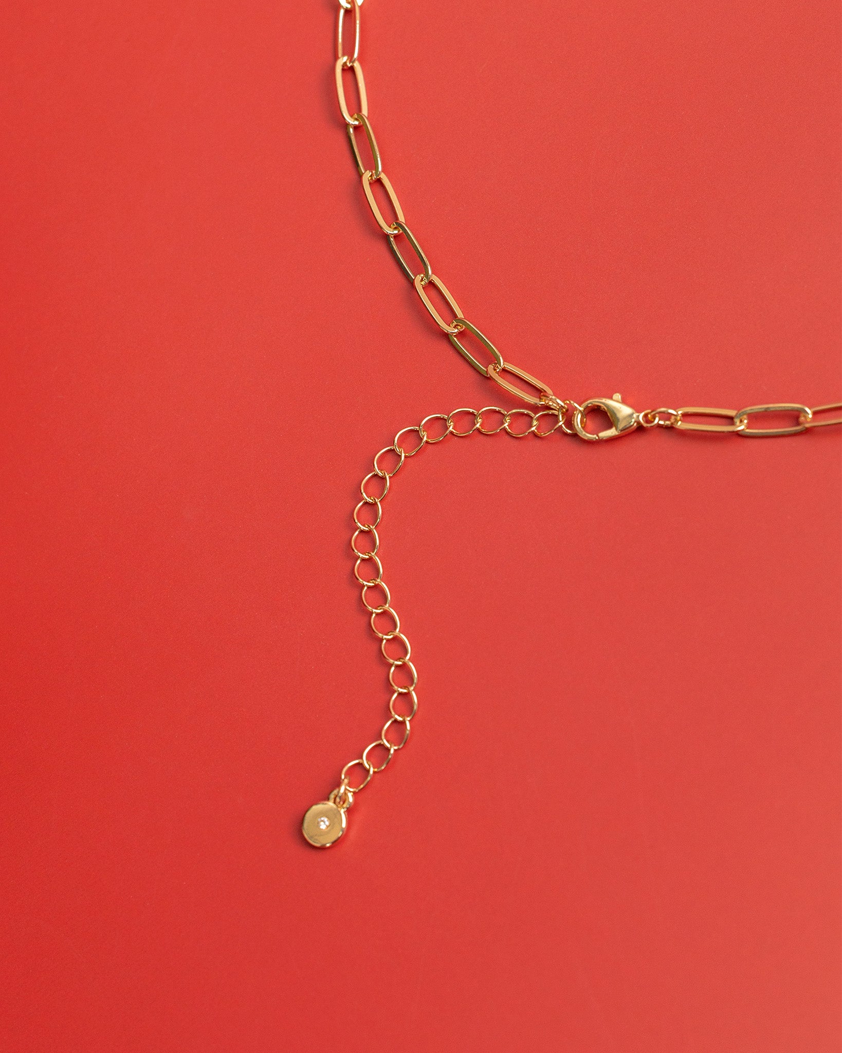 [SESSORI EXCLUSIVE] A playful gold-tone link chain necklace featuring bold, colorful holiday charms, including Santa Claus figures and miniature Christmas trees.