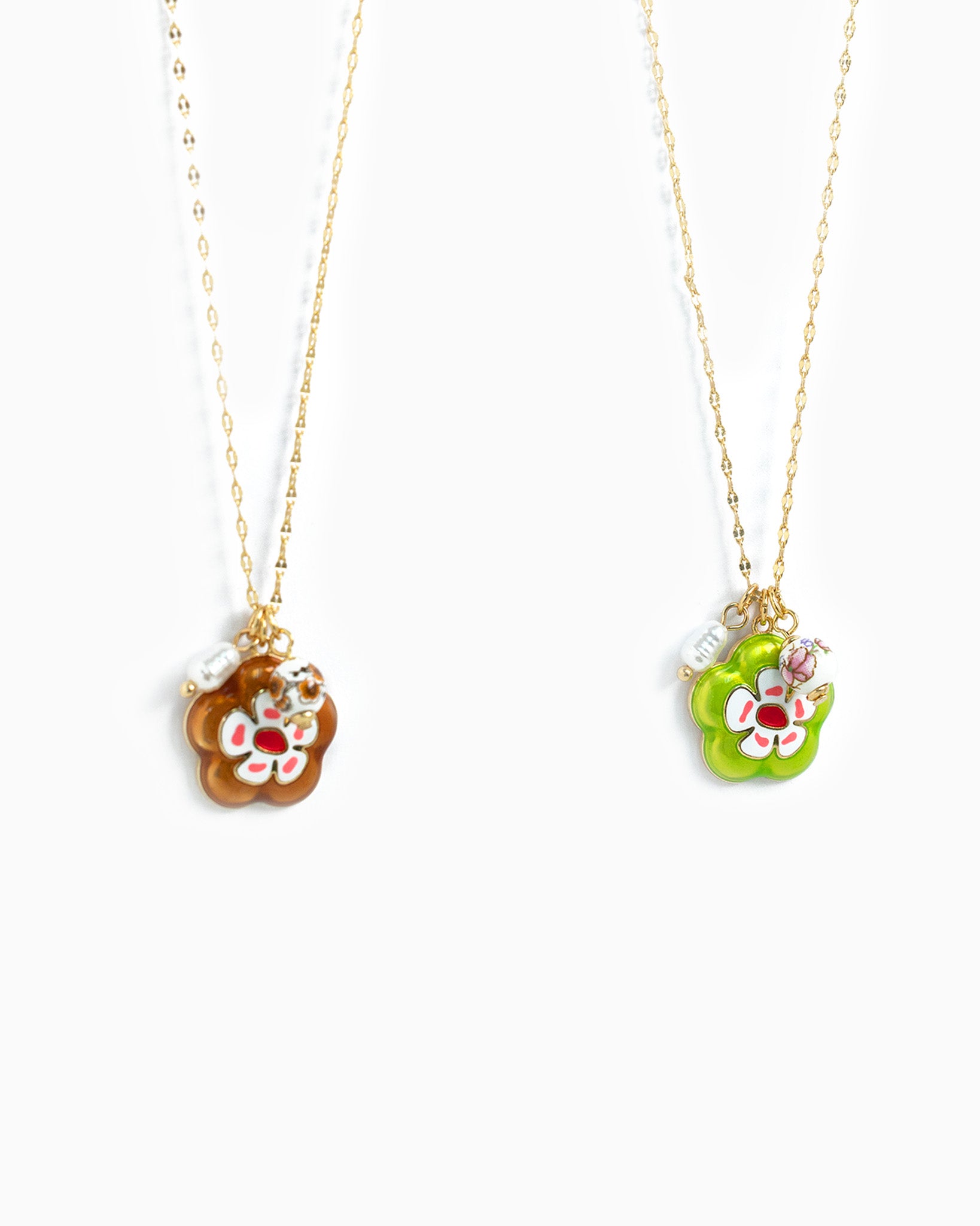 Oriental-inspired vintage necklaces featuring a porcelain-style floral bloom design.