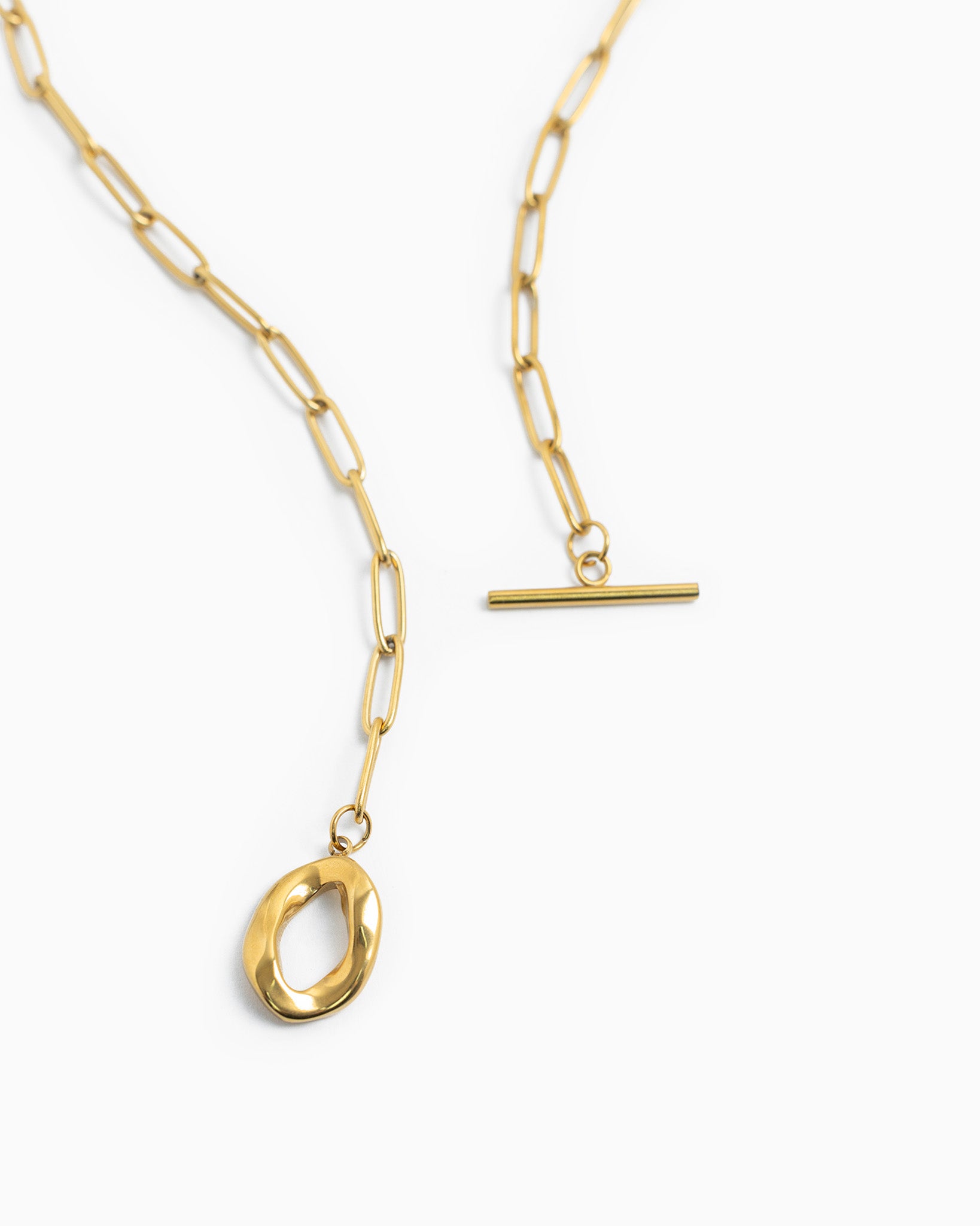 Stainless Sculpted Toggle Paperclip Necklace